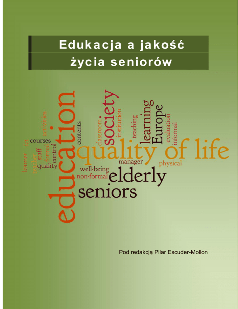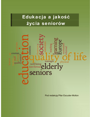Edukacja a jakość życia seniorów Pod redakcją Pilar Escuder-Mollon POUFNE Ten egzemplarz jest przeznaczony do dokładniejszej analizy, ewaluacji oraz celów procesu tłumaczenia i nie powinien być rozpowszechniany poza partnerami projektu QEduSen. ”Edukacja a jakość życia seniorów” Poufne, prawa autorskie tekstów; autorzy, 2013 tego wydania; Uniwersytet Jaume I, 2013 ISBN: w toku Pod redakcją: Pilar Escuder-Mollon Wydawca: Uniwersytet Jaume I Drukowanie przez: w toku Podręcznik ten jest częścią "Pakietu narzędzi ewaluacji edukacji seniorów w celu poprawy jakości ich życia" (http://www.edusenior.eu). Projekt jest dofinansowany przez Unię Europejską w ramach programu "Uczenie się przez całe życie" (Lifelong Learning Programme of the European Union) o numerze: 518227-LLP-1-2011-1-ES-GRUNDTVIG-GMP. Projekt ten został zrealizowany przy wsparciu finansowym Komisji Europejskiej. Publikacja odzwierciedla jedynie stanowisko ich autorów i Komisja Europejska nie ponosi odpowiedzialności za umieszczoną w nich zawartość merytoryczną. iii Autorzy (w porządku alfabetycznym) Bardus, Massimo. Università delle LiberEtà, Italy Bódi, Zsuzsanna. TREBAG Property and Projectmanagement Ltd. Hungary Eloniemi-Sulkava, Ulla. University of Helsinki, Palmenia Centre for Continuing Education. Finland Escuder-Mollon, Pilar. Universitat Jaume I, Spain Esteller-Curto, Roger. Universitat Jaume I, Spain Gil, Alina. Jan Dlugosz University in Czestochowa, Poland Issakainen, Cecil. University of Helsinki, Palmenia Centre for Continuing Education, Finland Kaupuzs, Aivars. Personality Socialization Research Institute of Rezekne Higher Education Institute, Latvia Lozanoba, Slavina. Assist Net, Bulgaria Lubkina, Velta. Personality Socialization Research Institute of Rezekne Higher Education Institute, Latvia Nagy, Enikő. TREBAG Property and Projectmanagement Ltd. Hungary Nowacka, Urszula. Jan Dlugosz University in Czestochowa, Poland Ochoa Siguencia, Luis. Jan Dlugosz University in Czestochowa, Poland Raso, Giuseppina. Università delle LiberEtà. Italy Savtchev, Boian. Assist Net, Bulgaria Usca, Svetlana. Personality Socialization Research Institute of Rezekne Higher Education Institute, Latvia Spis treści Wstęp ........................................................................................................ 5 Dlaczego jakość w sprawach życiowych?........................................................6 Seniorzy............................................................................................................7 Rola instytucji edukacyjnych ...........................................................................8 O tym podręczniku ...........................................................................................9 Poprawa jakości życia seniorów poprzez edukację........................................10 Projekt QEduSen ............................................................................................11 1. Jakość życia .................................................................................. 13 1.1. 1.2. 1.3. 1.4. 1.5. 1.6. 1.7. 2. Wstęp ...................................................................................................13 Rozumienie Jakości Życia....................................................................15 Definicja jakości życia .........................................................................16 Podstawowe potrzeby człowieka ...................................................17 Podmiotowy i przedmiotowy wymiar jakości życia ......................19 Adaptacja do zmian .......................................................................20 Wymiary jakości życia (QoL)..............................................................21 Wzrost jakości życia ............................................................................24 Adaptacja .......................................................................................24 Udział społeczny............................................................................25 Uzyskanie i ofiarowanie wsparcia .................................................25 Działanie ........................................................................................26 Zawsze kontynuuj naukę ...............................................................27 Wnioski ................................................................................................27 Referencje ............................................................................................28 Starzenie się .................................................................................. 31 2.1. 2.2. 2.3. 2.4. 2.5. 2.6. Wstęp ...................................................................................................31 Fakty o wieku.......................................................................................32 Doświadczenie w starzeniu się.............................................................35 Koncepcja udanego starzenia...............................................................36 Wnioski i wyzwania.............................................................................39 Referencje ............................................................................................39 i 3. Wymiar społeczny........................................................................ 41 3.1. 3.2. 3.3. 3.4. 3.5. 3.6. 3.7. 3.8. 4. Wstęp................................................................................................... 41 Demografia.......................................................................................... 42 Starzenie się społeczeństwa ................................................................ 43 Długość życia ...................................................................................... 44 Izolacja społeczna ............................................................................... 45 Role społeczne