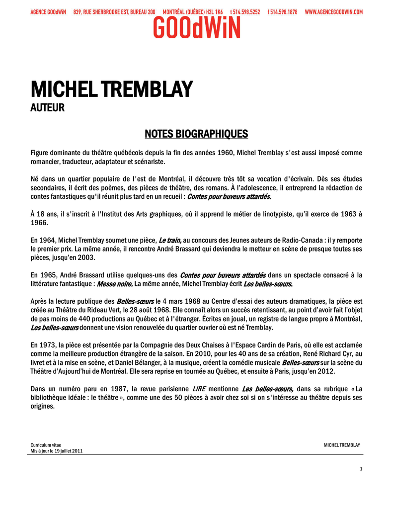 Michel Tremblay - Agence Goodwin
