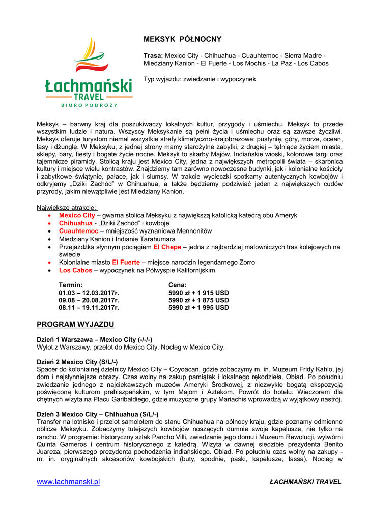 www.lachmanski.pl MEKSYK PÓŁNOCNY PROGRAM WYJAZDU