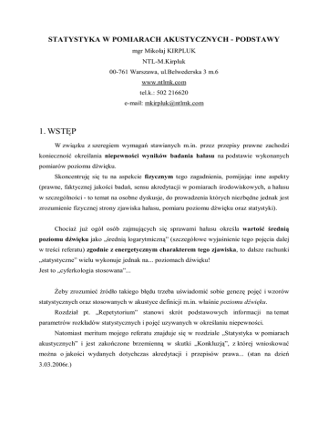 Statystyka w pomiarach akustycznych - podstawy - NTL