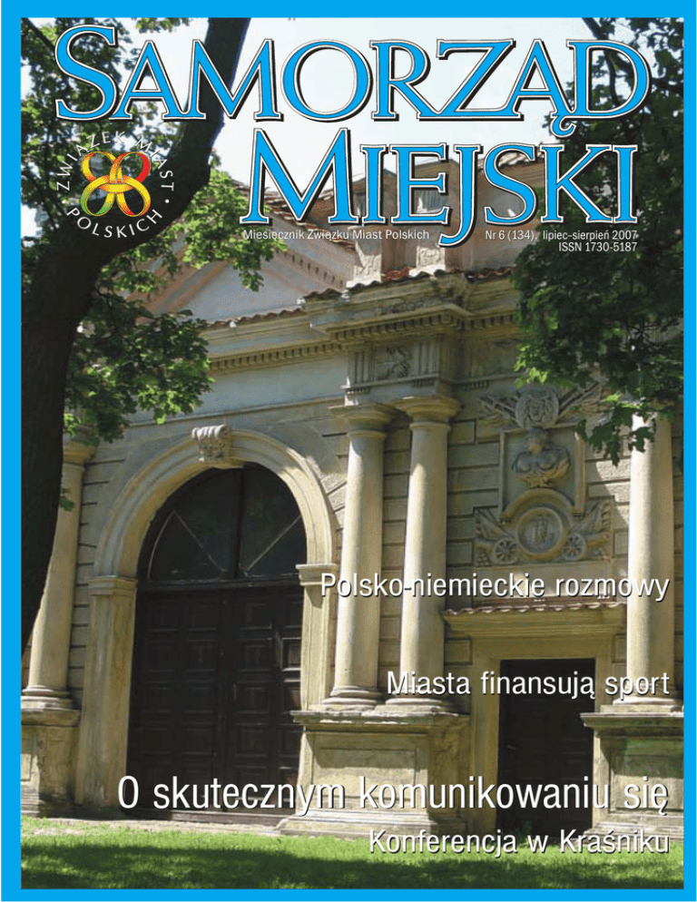 Miesięcznik Związku Miast Polskich Nr 6 (134), lipiec–sierpień 2007 ISSN 1730-5187 Polsko-niemieckie rozmowy Miasta finansują sport O skutecznym komunikowaniu się Konferencja w Kraśniku ZE ZWIĄZKU W NUMERZE ZE ZWIĄZKU VI Podczas zorganizowanej 13–15 czerwca br. czwartej ogólnopolskiej Konferencji „Public relations w samorządzie” w Kraśniku kilkudziesięciu burmistrzów i prezydentów z całej Polski oraz przedstawicieli administracji publicznej z Ukrainy zdobywało wiedzę na temat budowania wizerunku liderów i organizacji samorządowych. Tegoroczna konferencja odbywała się pod hasłem komunikacja społeczna. VIII W Ośrodku Sportu i Rekreacji w Słubicach 25 i 26 maja br. odbyła się konferencja „Finansowanie sportu w społecznościach lokalnych”. W jej organizację zaangażowali się Związek Miast Polskich, Związek Powiatów Polskich, Stowarzyszenie 10 Czerwca, Sport and Business Foundation, Polski Klub Infrastruktury Sportowej oraz miasto Słubice. IX Po raz czwarty już odbyły się w Warszawie targi CEPIF – największe targi inwestycji i nieruchomości w naszej części Europy. Tym razem wzięło w nich udział aż 3671 osób oraz 809 firm z 28 krajów. Tradycyjnie swoje oferty inwestycyjne zaprezentowały również polskie miasta. X Prawie 100 prezydentów, burmistrzów i urzędników miejskich wzięło udział w cyklu konferencji pt. „System Analiz Samorządowych. Monitorowanie usług publicznych w miastach. Podsumowanie wyników. Poszerzenie zakresu badań”, które minionej wiosny odbyły się w Redzie, Lublinie i Opolu. KRONIKA ZAGRANICZNA XII Przedstawiciele polskich i niemieckich samorządów pragną zaakcentować rolę społeczności lokalnych we współpracy międzynarodowej w Europie, w budowaniu poczucia wspólnej tożsamości, mającej fundament we wspólnych wartościach – czytamy z dokumencie końcowym VII Konferencji Miast i Gmin Partnerskich Polski i Niemiec. XIV W Brukseli 6 lipca br. uroczyście otwarto Dom Miast i Regionów, w murach którego znalazły miejsce organizacje skupiające samorządy z całej Europy. Jest wśród nich również Związek Miast Polskich. Na okładce: Barokowa brama stanowiąca część zespołu pałacowego Radziwiłłów w Białej Podlaskiej. Fot. Archiwum UM II I pielgrzymka samorządowców do św. Kingi Patronka na czasie Przez dwa dni, 16 i 17 czerwca br., samorządowcy z całej Polski mogli uczestniczyć w pielgrzymce do Starego Sącza, gdzie w klasztorze sióstr klarysek spoczywa święta Kinga, w tych dniach uroczyście ogłoszona samorządową patronką. P ierwszego dnia w sali przy bazylice św. Małgorzaty w Nowym Sączu spotkali się na konferencji poświęconej swojej nowej patronce. Mottem konferencji były słowa papieża Jana Pawła II, wygłoszone podczas mszy św. kanonizacyjnej 16 czerwca 1999 r. na starosądeckich błoniach: Jako Księżna umiała troszczyć się o sprawy Pana także na tym świecie. Przy boku męża współuczestniczyła w rządzeniu, wykazując stanowczość i odwagę, wielkoduszność i troskę o dobro kraju i poddanych. Otwierając konferencję, współprzewodniczący Komisji Wspólnej, prezydent Katowic, Piotr Uszok powiedział: – Każde dzieło wielkie i ważne – a tym samym trudne, pragnie odwołać się do sprawdzonych wzorów, do czyjegoś przykładu. Mówiąc inaczej – szuka swojego patrona (...) Święta Kingo! Samorząd polski – w osobach zgromadzonych tutaj przedstawicieli miast, miasteczek, gmin wiejskich, powiatów i województw – wita Cię jako swoją Patronkę! Postać księżnej, żyjącej osiem stuleci temu, przybliżył ks. prof. Ryszard Banach, który mówił również o tym, jak przez wieki kształtował się i rozwijał kult błogosławionej Kingi na ziemi sądeckiej i w całym kraju. Św. Kinga a rozwój Polski Taki temat wybrał dyrektor Muzeum w Bochni, Jan Flasza. Mówił on o tym, że w księstwie krakowsko-sandomierskim, ciężko doświadczonym utarczkami ze stryjem Bolesława, Konradem, a wcześniej – pustoszącym najazdem tatarskim, pojawił się wreszcie promyk nadziei – odkrycie soli kamiennej w Bochni. Był to niewątpliwy Msza św. na starosądeckich błoniach. SAMORZĄD MIEJSKI nr 6 (134), lipiec–sierpień 2007 sukces gospodarczy Bolesława i Kingi. Dzięki ich staraniom odbudowywano kraj, lata ich panowania to czas pracy kolonizacyjno-osadniczej, przekształceń struktury przestrzennej kraju, rozbudzenia poczucia narodowego i rozwoju kulturalnego. W stosunkowo krótkim czasie założono na ziemi krakowskiej i sandomierskiej 17 miast na prawie niemieckim! W politykę miejską para książęca zaangażowała się osobiście, inwestycje sfinansowano dzięki pieniądzom Kingi. W świetle tak pełnej rozmachu akcji gospodarczej, budowlanej jawią się oni jako prekursorzy Kazimierza Wielkiego. Wzór dla współczesnych Z kolei prof. Barbara Kudrycka, rektor Wyższej Szkoły Administracji Publicznej w Białymstoku, specjalistka w sprawach etyki służby publicznej wygłosiła referat zatytułowany: „Święta Kinga wzorem dla samorządowców”. – Święta ta nieprzypadkowo została patronką samorządowców, bowiem wiedziała jak i potrafiła mądrze dzielić się władzą. Wykorzystując doświadczenia sąsiadów, dzisiaj powiedzielibyśmy „dobre praktyki” Węgrów i Niemców, tworzyła prawo lokalne decentralizujące Jej władzę (...) zarówno reforma podatków, ceł, rozwój kultury i języka polskiego, jak i działalność charytatywna i opieka społeczna dowodzą jednoznacznie, że św. Kinga była nie tylko dobrym i przewidującym administratorem, ale również, że kierowała się dobrem publicznym jako najwyższą wartością, zawsze przedkładając je ponad interes osobisty. Świadczy o tym również fakt, że cały swój posag przekazała ZE ZWIĄZKU na odbudowę kraju (...) – mówiła prof. Kudrycka. Księżna rządziła w sposób nowatorski i przemyślany. Sącz oraz okoliczne wsie przeniosła na pra