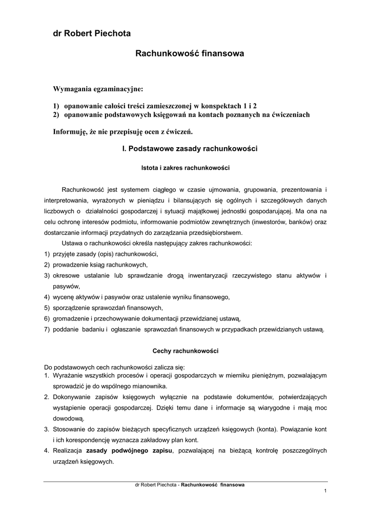 dr Robert Piechota Rachunkowość finansowa - Kłodzko