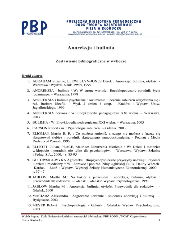 Anoreksja i bulimia - Publiczna Biblioteka Pedagogiczna RODN