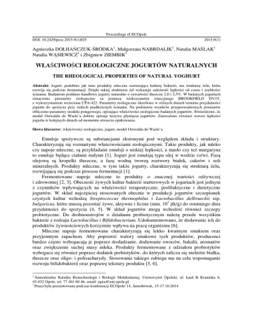 właściwości reologiczne jogurtów naturalnych