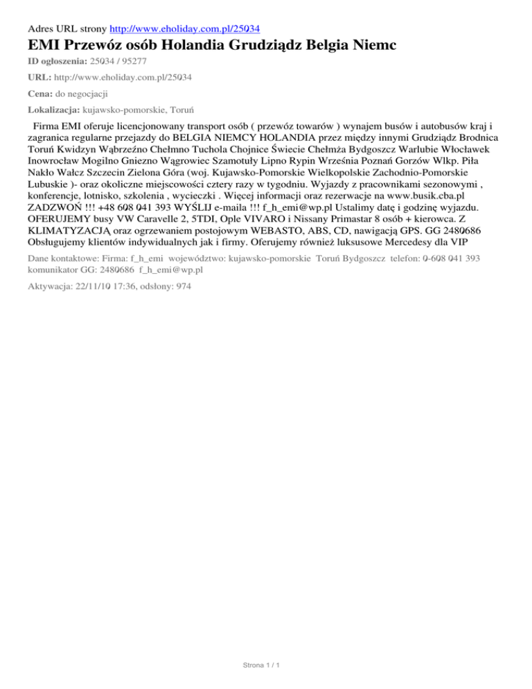 EMI Przewoz osob Holandia Grudziadz Belgia