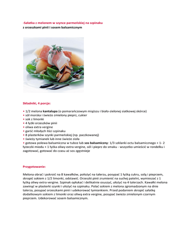 -Sałatka z melonem w szynce parmeńskiej na szpinaku z