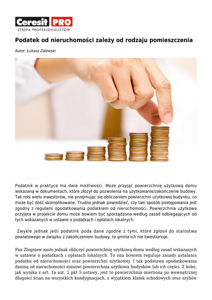Podatek od nieruchomości zależy od rodzaju pomieszczenia Autor: Łukasz Zalewski Podatnik w praktyce ma dwie możliwości. Może przyjąć powierzchnię użytkową domu wskazaną w dokumentach, które złożył do pozwolenia na użytkowanie/zakończenie budowy. Tak robi wielu inwestorów, nie przejmując się obliczaniem powierzchni użytkowej budynku, co może być dość skomplikowane. Trudno jednak powiedzieć, czy taki sposób postępowania jest zgodny z regułami opodatkowania podatkiem od nieruchomości. Powierzchnia użytkowa przyjęta w projekcie domu może bowiem być sporządzona według zasad odbiegających od tych wskazanych w ustawie o podatkach i opłatach lokalnych. Zwykle jednak jeśli podatnik poda dane zgodne z tymi, które zgłosił do starostwa powiatowego w związku z zakończeniem budowy, to gmina ich nie kwestionuje. Pan Zbigniew może jednak obliczyć powierzchnię użytkową domu według zasad wskazanych w ustawie o podatkach i opłatach lokalnych. To ona bowiem reguluje zasady ustalania podatku od nieruchomości oraz powierzchni użytkowej. I tak podstawę opodatkowania daniną od nieruchomości stanowi powierzchnia użytkowa budynków lub ich części. Z kolei, jak wynika z art. 1a ust. 1 pkt 5 ustawy, jest to powierzchnia mierzona po wewnętrznej długości ścian na wszystkich kondygnacjach, z wyjątkiem klatek schodowych oraz szybów dźwigowych, przy czym za kondygnację uważa się również garaże podziemne, piwnice, sutereny i poddasza użytkowe. A zatem do opodatkowania trzeba brać pod uwagę powierzchnię użytkową wszystkich pokoi, również tych na poddaszu użytkowym, łazienek, kuchni, pomieszczeń gospodarczych, a także garażu i innych pomieszczeń, z wyjątkiem np. klatki schodowej, która jest między parterem budynku a piętrem (poddaszem użytkowym w omawianym przypadku). Jeśli pan Zbigniew ma piwnicę, to również jej powierzchnia będzie opodatkowana. To jednak nie wszystkie zasady, które trzeba brać pod uwagę przy obmiarze domu. Jak wynika z art. 4 ust. 2 ustawy o podatkach i opłatach lokalnych, powierzchnię pomieszczeń lub ich części oraz część kondygnacji o wysokości w świetle od 1,40 m do 2,20 m zalicza się do powierzchni użytkowej budynku w 50 proc., a jeżeli wysokość jest mniejsza niż 1,40 m, powierzchnię tę pomija się. Przepis ten komplikuje obmiar powierzchni użytkowej, zwłaszcza w takim domu, jak wybudował pan Zbigniew. Posiada on bowiem budynek, w którym są skosy i sufit umieszczony na wysokości 2 m od podłogi. Wyjaśnijmy najpierw, że „światło”, o którym mowa w art. 4 ust. 2 ustawy, nie zostało nigdzie zdefiniowane. Przyjmuje się jednak, że chodzi o odległość od podłogi do sufitu. Kolejne wątpliwości dotyczą tego, czy taka odległość musi być na całej powierzchni np. pokoju, czy też należy pokój podzielić na części (np. w zależności od tego, czy sufit jest wyżej czy niżej) i sprawdzać dla każdej z nich, czy odległość od sufitu do podłogi jest większa niż 2,2 m. Tylko bowiem pomieszczenia lub ich części wyższe mogą być opodatkowane w całości. Jeśli z kolei pomieszczenie lub jego część jest niższe, a nie niższe niż 1,4 m, to wtedy wliczamy do opodatkowania połowę jego powierzchni. Czytając przepisy literalnie, należy uznać, że pomieszczenia i kondygnacje trzeba dzielić na części i sprawdzać, jaka jest odległość od podłogi do sufitu. O podziale na części wspomina bowiem art. 4 ust. 2 ustawy o podatkach i opłatach lokalnych. Oznacza to w praktyce, że części pomieszczeń lub całe pomieszczenia należy pozostawić nieopodatkowane, jeśli ich wysokość jest mniejsza niż 1,4 m. Pan Zbigniew powinien więc wykazać powierzchnię użytkową pomieszczeń o wysokości ponad 2,2 m w całości. Jeśli zaś np. pokój na poddaszu ma skosy, to powinien wliczyć do podstawy opodatkowania w połowie powierzchnie, które mają w świetle od 1,4 do 2,2 m. Niższe fragmenty pokoju powinien pominąć. Co więcej, powinien wykazać również połowę pomieszczenia łazienki, skoro jego wysokość wynosi 2 m. Zwróćmy uwagę, że informację o nieruchomościach i obiektach budowlanych (tak nazywa się formularz) pan Zbigniew musi złożyć w ciągu 14 dni od powstania okoliczności uzasadniających powstanie obowiązku podatkowego. W praktyce termin trzeba więc liczyć od zakończenia budowy lub rozpoczęcia jego użytkowania przed ostatecznym wykończeniem. Ponadto, skoro jest to nowy budynek, czytelnik nie będzie musiał płacić daniny od kolejnego miesiąca. Podatek będzie musiał zapłacić za okres rozpoczynający się 1 stycznia 2016 r. Zgodnie bowiem z art. 6 ust. 2 ustawy o podatkach i opłatach lokalnych, od nowych budynków obowiązek podatkowy powstaje z dniem 1 stycznia roku następującego po roku, w którym budowa została zakończona albo w którym rozpoczęto użytkowanie budynku lub jego części przed jego ostatecznym wykończeniem. Pan Zbigniew nie będzie jednak mógł sam wpłacić daniny na konto urzędu gminy, na terenie której ma dom. Będzie musiał czekać na decyzję ustalającą wysokość podatku od nieruchomości za 2016 r. od wójta, burmistrza lub prezydenta miasta. Dopiero po jej otrzymaniu będzie musiał wpłacić podatek – w czterech równych latach lub jednorazowo (o ile kwota daniny nie przekroczy 100 zł). W sytuacji gdy kwota do zapłaty przekroczy 100 zł, podatnik będzie mógł sam zdecydować, czy wpłacić daninę w ratach, czy jednorazowo. Można samodzielnie obliczyć powierzchnię lokalu, ale i tak z zapłatą trzeba poczekać na decyzję urzędu Łukasz Zalewski Podstawa prawna Art. 1a ust. 1 pkt 5, art. 4 ust. 2, art. 6 ust. 2, 6 i 7 ustawy z 12 stycznia 1991 r. o podatkach i opłatach lokalnych (t.j. Dz.U. z 2014 r. poz. 849 ze zm.). © 2013 Henkel Polska sp. z o.o.