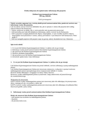 informacja dla pacjenta Kalium hypermanganicum Galena 100 mg