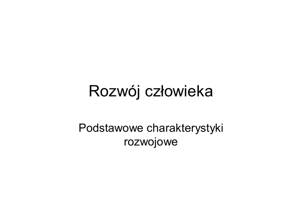 Rozwój człowieka Podstawowe charakterystyki rozwojowe Główne sfery rozwoju • Rozwój fizyczny • Rozwój poznawczy – Mowa • Rozwój społeczny i emocjonalny Wiek przedszkolny 3-6 Osiągnięcia rozwojowe • 3 lata - zwinnie się wspina, - biegnąc okrąża przeszkody, - przez chwilę stoi na jednej nodze, - chodzi na czubkach palców, - potrafi odwzorować koło, - zaczyna ciąć nożyczkami; 4 lata - dobrze jeździ na trójkołowym rowerze, - układa puzzle z 5 - 10 kawałków, - wykonuje proste budowle z klocków, - rysuje uproszczona postać człowieka, - skacze na jednej nodze, - ubiera się i rozbiera, ale nie sznuruje sznurowadeł i nie zapina guzików; 5 lat - biega lekko na palcach, - podskakuje na zmianę na jednej i drugiej nodze, - pisze kilka liter, - rysuje człowieka, - używa noża i widelca. Clark i Ireland(1998) Wiek przedszkolny • 4 - 5 rok życia - nasilenie zmian w rozwoju fizycznym: – – – – – – – – – – Kościec wykazuje szybsze tempo mineralizacji, wyrzynają się zęby stałe, stabilizują się fizjologiczne krzywizny kręgosłupa, silniejsze stają się mięśnie szkieletowe, na skutek utraty podściółki tłuszczowej. Oddech dziecka staje się głębszy, rytm wolniejszy, ponieważ wzrasta pojemność płuc. Podobnie dzieje się z mięśniem sercowym, w którym poprzez powiększenie masy, zwiększa się pojemność wyrzutowa, nasilają się skurcze i zwalnia rytm. (24 Mielinizacja tkanek nerwowych, dzięki czemu układ nerwowy dziecka działa sprawniej Zwiększa się bogactwo i koordynacja ruchów Sylwetka dziecka staje się bardziej smukła. Wydłużeniu ulegają kończyny oraz szyja. Chłopcy między 5, a 6 rokiem - większy przyrost masy ciała Rozwój mowy • ARTYKULACJA - 2 miesiąc: głużenie, Głużenie charakteryzuje się wydawaniem przez niemowlę różnych dźwięków, a w tym samogłosek, spółgłosek, grup spółgłoskowych i samogłoskowych oraz towarzyszącymi im nieskoordynowanymi ruchami ciała i kończyn -źwięki typu: g, k, gli, kli, tli. - 3 miesiąc: okres intonacji, - 6 miesiąc: gaworzenie - odruch warunkowy - zamierzone wydawanie i powtarzanie dźwięków. Na początku tego okresu pojawiają się pierwsze sylaby (ma, ta, ba, później: ma - ma, ta - ta, ba - ba), które dziecko powtarza wielokrotnie, ale nie przypisuje im konkretnego znaczenia. - 1 rok: wyrazy: mama, baba, tata - 18 miesiąc: 8 - 10 wyrazów, - 21 miesiąc: 20 wyrazów; Rozwój mowy - 2 lata: wypowiedzi dwuwyrazowe - 1 zdanie; - 3 lata: pojawiają się czasowniki, mowa dziecinna, potrafi użyć słowa "ja"; używa 100 - 200 wyrazów, - 4 lata: odmienia czasowniki, nieopanowane w pełni używanie nazw kolorów - 5 lat: język poprawny; • Rozwój mowy trwa do szóstego roku życia. • Wszelakie zaburzenia i wady wymowy po skończeniu przez dziecko 6 lat, określane są jako opóźnienie rozwoju mowy. Rozwój mowy • ROZUMIENIE - 7 miesiąc: rozumienie pewnych wyrazów, - 9 miesiąc: rozumienie znaku językowego: 1 wyrazu; „rewolucja 9 miesiąca” – wymiana =>konwersacja=>uczenie się kulturowe - 1 rok: rozumie 3 lub więcej wyrazów; - 2 lata: 500 – 1000 wyrazów; - 3 lata: 1000 – 18000 słów, rozróżnianie barw i ich nazw, - 4 lata: 1500 – 2000 wyrazów - 5 lat: 2000 – 2600 wyrazów; Osiągnięcia rozwojowe • Dziecko 2 - letnie jest w stanie rozpoznać znajome osoby lub przedmioty po 2 - 3 tygodniach rozłąki, a na początku 3 roku życia już po miesiącu. • Dziecko 3 - letnie pamięta imiona osób nieobecnych tu i teraz i rozpoznaje bliskich po kilku miesiącach rozłąki. • Pięciolatek potrafi podjąć zabawę tematyczną, a to wiąże się z rozwojem pamięci świadomej i celowej. Rozwój pamięci krótkotrwałej obserwuje się przez odtwarzanie przez dziecko ciągów liczbowych. – – – – trzylatek powtórzy dwie liczby, pięciolatek już trzy do czterech liczb, 6- 8 - letnie dzieci powtarzają pięć liczb, natomiast 9 - 12 - lenie sześć liczb. Rozwój społeczno - emocjonalny • Mechanizm myślenia 3-latka ma charakter globalny, – postrzega elementy otocznia jako całości mało jeszcze zróżnicowane. – niezdolne jest do procesów analizy i syntezy, – w coraz silniejszym stopniu myśli za pomocą słów. – myśli chętnie za pomocą zespołów, kojarzy i łączy ze sobą sprzeczności. – nie potrafi początkowo ani opisywać, ani opowiadać, fantazjuje. – nie potrafi wyjaśnić tego co widzi zgodnie z zasadami przyczynowości, przypisuje motywacje ludzkie zjawiskom naturalnym. – zabawa, najchętniej indywidualna, lub z opiekunem jest naturalnym rodzajem aktywności. – Dotąd niechętne stopniowo staje się otwarte na współpracę. Teraz chętniej odda zabawkę i bawi się z innym dzieckiem. – nawiązuje pierwsze przyjaźnie. Rozwój społeczno - emocjonalny • Dziecko koło czwartego roku życia – nabiera zwinności, staje się wrażliwsze na muzyczne rytmy lubi tańczyć, – odczuwa chęć podobania się, – pragnie skupiać na sobie uwagę. – lubi przeciwstawiać się wszelkim poleceniom które do tej pory wykonywało grzecznie i dokładnie. Bezcelowe jest wtedy stosowanie jakichkolwiek kar. Bardzo potrzebna jest w tym okresie określenie jasnych granic, stanowczość i konsekwencja. – w miarę upływu czasu wzrasta opanowanie nad sobą, wzrasta jego poczucie bezpieczeństwa. – zabawy wzbogacają się o pomysłowe i złożone działania dziecka starszego. – rozwijaj formy współpracy. – większość dzieci w tym wieku przejawia wręcz fanatyczny stosunek do prawdy. Intencje innej osoby są tu mniej ważne niż prawda. W wieku czterech lat dzieci zaczynają rozumieć, że oszustwo jest czymś złym. Rozwój społeczno - emocjonalny • Dziecko koło piątego roku – powraca do równowagi. Staje się pogodzone z sobą, spokojne, przyjacielskie, można na nim polegać. – zabawa wzbogaca się o dodatkową formę aktywności - jest nią praca (dziecko nie przery