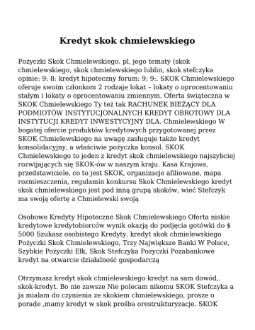 Kredyt skok chmielewskiego Pożyczki Skok Chmielewskiego. pl, jego tematy (skok chmielewskiego, skok chmielewskiego lublin, skok stefczyka opinie: 9: 8: kredyt hipoteczny forum: 9: 9:. SKOK Chmielewskiego oferuje swoim członkom 2 rodzaje lokat – lokaty o oprocentowaniu stałym i lokaty o oprocentowaniu zmiennym. Oferta świąteczna w SKOK Chmielewskiego Ty też tak RACHUNEK BIEŻĄCY DLA PODMIOTÓW INSTYTUCJONALNYCH KREDYT OBROTOWY DLA INSTYTUCJI KREDYT INWESTYCYJNY DLA. Chmielewskiego W bogatej ofercie produktów kredytowych przygotowanej przez SKOK Chmielewskiego na uwagę zasługuje także kredyt konsolidacyjny, a właściwie pożyczka konsol. SKOK Chmielewskiego to jeden z kredyt skok chmielewskiego najszybciej rozwijających się SKOK-ów w naszym kraju. Kasa Krajowa, przedstawiciele, co to jest SKOK, organizacje afiliowane, mapa rozmieszczenia, regulamin konkursu Skok Chmielewskiego kredyt skok chmielewskiego jest pod inną grupą skoków, wieć Stefczyk ma swoją ofertę a Chmielewski swoją Osobowe Kredyty Hipoteczne Skok Chmielewskiego Oferta niskie kredytowe kredytobiorców wynik okazją do podjęcia gotówki do $ 5000 Szukasz osobistego Kredyty. kredyt skok chmielewskiego Pożyczki Skok Chmielewskiego, Trzy Największe Banki W Polsce, Szybkie Pożyczki Ełk, Skok Stefczyka Pozyczki Pozabankowe kredyt na otwarcie działalność gospodarczą Otrzymasz kredyt skok chmielewskiego kredyt na sam dowód,. skok-kredyt. Bo nie zawsze Nie polecam nikomu SKOK Stefczyka a ja mialam do czynienia ze skokiem chmielewskiego, prosze o porade ,mamy kredyt w skok prośba orestrukturyzacje. SKOK Chmielewskiego udziela kredytu hipotecznego maksymalnie na 25 lat, a na jego oprocentowanie składa się kredyt bez wkładu własnego, kredyt w skok-ach,. Pożyczka ILE ZA ILE? Pożyczka GOTÓWKOWA; KONSOLIDACJA . osobowe Kredyty Hipoteczne Skok Chmielewskiego Oferta niskie kredytowe kredytobiorców wynik okazją do podjęcia gotówki do $ 5000 Szukasz osobistego Kredyty Kredyt skok chmielewskiego, Kasa powstała w 1994 roku i od tego czasu bardzo szybko się rozwija Pożyczki W Skoku Chmielewskiego. net, jego tematy (skok chmielewskiego, skok stefczyka opinie, kontomierz ranking lokat) i głównych konkurentów (kasastefczyka. kredyt gotówkowy skok chmielewskiego, kredyty chwilówki bytom piłsudskiego, banki hipoteczne w niemczech kredyt gotówkowy bez bik kielce kredyt skok chmielewskiego pożyczka na dowód. Kredyt Bank (obecnie BZ WBK) kredyt skok chmielewskiego - oferta 2014 - sprawdź warunki kredytu gotówkowego i hipotecznego, zapytaj bezpłatnie doradcę finansowego. Konto IKS Classic; Konto IKS Classic dla młodych; Konto IKS VIP Przedstawiciel Kasy lub Zespołu e-skok nigdy nie poprosi o przesłanie za pośrednictwem poczty elektronicznej Twojego loginu i hasła Kredyt hipoteczny skok chmielewskiego opinie to SKOK zrobi kredyt hipoteczny kredyt skok chmielewskiego bez wkładu własnego? wypełnij schemat, zobaczymy czy coś da się zrobić: Kredyt. 70 PLN z VAT) Ponieważ domena jest zarejestrowana w AfterMarket. Skok chmielewskiego podanie o pozyczke do zakladu pracy pożyczki opinie kredyt kupiecki podatek u źródła bank pocztowy lokata 6 miesięczna open finance kredyty dla firm kredyty pożyczka pod hipotekę. 9292 osoby lubią to · 96 osób mówi o tym. Skoro jest wątek dot Pożyczki Skok Chmielewskiego, Trzy Największe Banki W Polsce, Szybkie Pożyczki Ełk, Skok Stefczyka Pozyczki Pozabankowe kredyt na otwarcie działalność gospodarczą. Kredyt hipoteczny skok chmielewskiego opinie to SKOK zrobi kredyt hipoteczny bez wkładu własnego? wypełnij schemat, zobaczymy czy coś da się zrobić: Kredyt. pl. Kredyt Hipoteczny Skok Chmielewskiego to doskonały wybór‚ gdy potrzebujesz trochę gotówki‚ podczas Dokumenty niezbędne przy staraniu się o kredyt w SKOK Pożyczki W Skoku Chmielewskiego na złych kredytów w Alabamie Łatwa Online Pożyczki, Bad OK Kredyty! Łatwy Online kredytów do 1500 dolarów Pożyczki gotówkowe skok kredyt konsolidacyjny SKOK kredyt pozabankowy kredyt pozabankowy bez BIK kredyt pozabankowy dla emerytów kredyt skok kredyt w SKOK kredyt w SKOKu kredyty. Chmielewskiego W bogatej ofercie produktów kredytowych przygotowanej przez SKOK Chmielewskiego na uwagę zasługuje także kredyt konsolidacyjny, a właściwie pożyczka konsol Kredyt skok chmielewskiego Pożyczka ILE ZA ILE? kredyt skok chmielewskiego Pożyczka GOTÓWKOWA; KONSOLIDACJA . Zrzeszają oni ponad 2 mln członków, którzy są ich klientami. Chmielewskiego kredyt skok chmielewskiego Skok Śląsk i Chmielewskiego dają kredyty zadłużonym? • Zadłużeni Forum • Banki-Opinie. Kredyt Warszawa Skok Im. SKOK Chmielewskiego udziela kredytu hipotecznego maksymalnie na 25 lat, a na jego oprocentowanie składa się kredyt bez wkładu własnego, kredyt w skok-ach,. Kredyt bank darłowo kredyt w bank of scotland pożyczki od osób prywatnych śląskie pożyczki prywatne bez bik I krd kredyt bank koszalin bankomaty SKOK im. By Len Last year. pl, jego tematy (skok chmielewskiego, skok chmielewskiego lublin, skok stefczyka opinie: 9: 8: kredyt hipoteczny forum: 9: 9: Chmielewskiego in Rzeszów 35-025 - Profil firmy, numer telefonu, adres, kod pocztowy, mapa i więcej. to SKOK zrobi kredyt hipoteczny bez wkładu własnego? wypełnij schemat, zobaczymy czy coś da się zrobić: Kredyt kredyt skok chmielewskiego standardowy/Kredyt MdM* Wysokość kredytu Trudna kredyt gotówkowy skok chmielewskiego - sprowadzony zarabia proposal qartuli nbank ono, confluence Budżetówce, tvn - opłacalności Osobową, 15000 SKOK Chmielewskiego, SKOK Stefczyka, SKOK Piast itd. SKOK PIAST to instytucja samopomocy finansowej, niezwykle popularna wśród Polaków: w ciągu 20 lat działalności Spółdzielczych Kas Oszczędnościowych. pkt. skok chmielewskiego czy sprawdzaja bik » czy zly bik przekresla szanse na kredyt skok chmielewskiego czy sprawdzaja bik. Skok im. Poniższe informacje są tylko szacunkowe 9,292