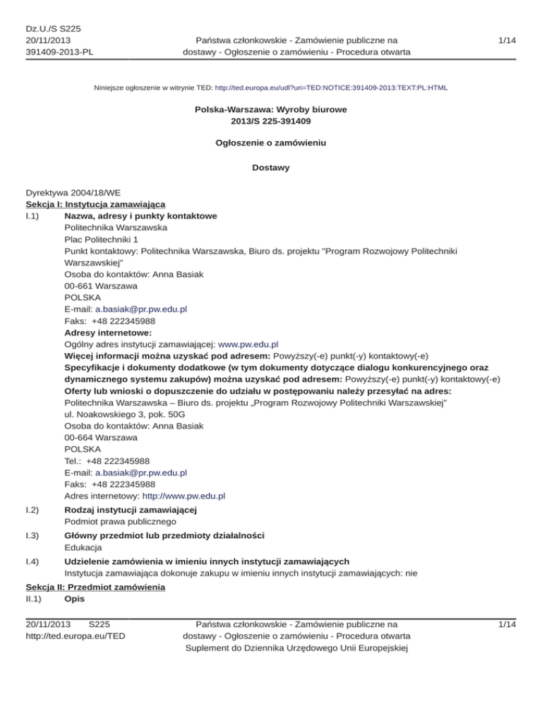 Ogłoszenie o zamówieniu - Politechnika Warszawska