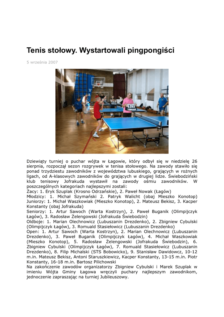 sierpnia, rozpoczął sezon rozgrywek w tenisa stołowego. Na zawody stawiło się