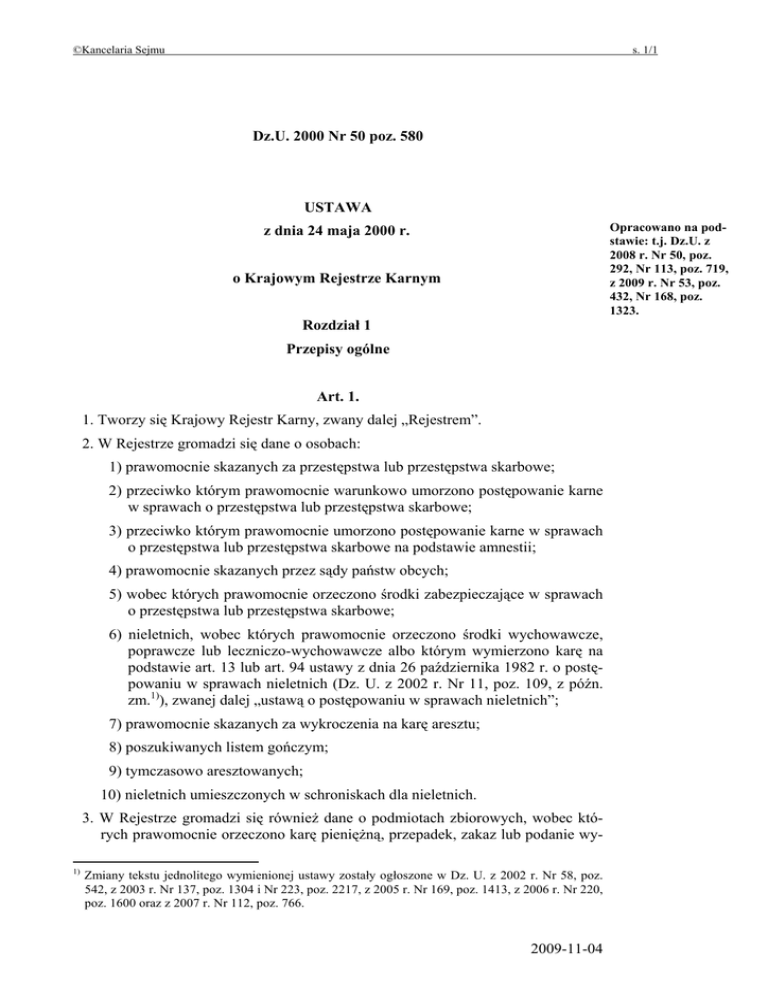 Ustawa o Krajowym Rejestrze Karnym z dnia 24.05 2000r.