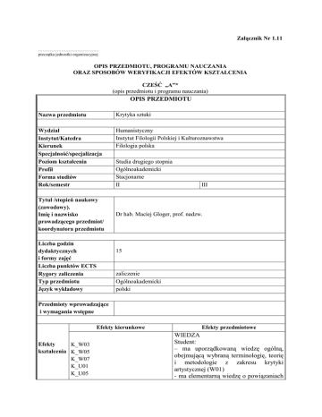 Krytyka sztuki - Instytut Filologii Polskiej i Kulturoznawstwa