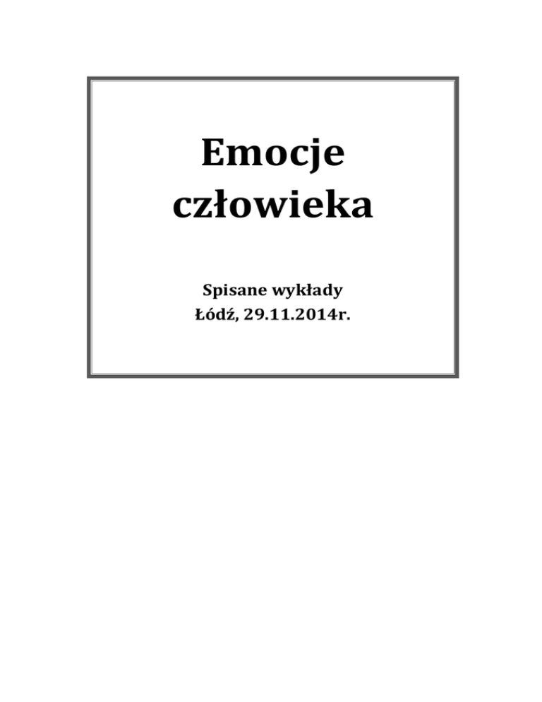 Emocje człowieka Spisane wykłady Łódź, 29.11.2014r. „Ten zaś, kto się łączy z Panem, jest z nim jednym duchem” (1 Kor 6, 17) Łódź, 29.11.2014r. Część 1 Nasze spotkania cykliczne, one właściwie zawsze przedstawiają tą najważniejszą przestrzeń naszego życia i istnienia. Ukazują tą przestrzeń, która nieustannie umyka. A nie tylko umyka, ale także jest świadomie przez systemy ukrywana, usuwana, niszczona, czyli tzw. samodzielność, zdolność kreacji własnego życia w sensie duchowej kreacji własnego życia, a kierowana jest w stronę kreacji typowo takiej systemowej, aby człowiek potrzebował tego, co tak naprawdę chce dać mu świat, który go osacza, nie pozwala mu na indywidualny wzrost wewnętrzny duchowy. Ale przecież ten wzrost wewnętrzny duchowy jest tym wzrostem, który pozwala człowiekowi na przemienianie jego uczuć, myślenie w sposób kreatywny, ale kreatywny nie tylko w taki, aby świat technologiczny i świat zmysłowy tego świata miał zysk z niego. Ale siła duchowa, ta kreacja wewnętrzna nasza duchowa wynikająca z mocy Ducha Bożego, Ducha Świętego, ona daje nam właśnie poznanie, o którym mówi Jezus Chrystus w Ewangelii wg św. Jana rozdział 14, mówi takie słowa: Ja już z tego świata muszę odejść, ale wy nie smućcie się z tego powodu, ponieważ przyślę wam Parakleta - Ducha Świętego, który przypomni wam, nauczy was i zadba, nauczy dbałości. Czyli Duch Św. jest tą mocą kreacji, kreatywną naszego umysłu, naszego serca, naszej duszy, naszego ducha. Właściwie On jest duchem, Duch Św. jest duchem, który przychodzi i staje się właściwym sensem naszego pojmowania i zrozumienia, czynienia dla drugiego człowieka, a także dla siebie, ponieważ tak naprawdę możemy drugiemu człowiekowi dać to co mamy w sobie, a nie możemy dać tego czego nie mamy. Ale znowu jest sytuacja taka, że Jezus Chrystus mówił takie słowa: jesteście pełnią, czyli macie wszystko i cierpicie z braku pełni. Więc my musimy poszukiwać natury pełni, która jest w nas, ponieważ natura pełni jest tą siłą, która daje nam umiejętność kreacji swojego życia, ale zgodnie z tą pamięcią, z tą nauką i z tą dbałością o właściwą naturę siebie, właściwą naturę świata i wszystkiego co nas otacza. Więc musimy poszukiwać tej siły, która w nas jest najważniejsza. A ta siła o której rozmawialiśmy, właściwie można ją ogólnie określić jako MIŁOŚĆ. Tylko że miłość w tym świecie jest rozumiana w sposób różny. Są tysiące różnych odcieni miłości. Ale przecież miłość to życie. Czy można powiedzieć, że życie jako moc, która daje człowiekowi życie jest różna? Jest tylko jedna. Jest jedna siła życia. Nie możemy podłączyć się do gniazdka elektrycznego i żyć. Nie jesteśmy maszyną, ale istotą żywą, która ma duszę, więc jej natura, czyli człowieka natura, jest w jedności z Bogiem. Dusza potrzebuje pokarmu, a tym pokarmem jest życie Boże. Czyli człowiek zdąża ku temu, co jest do niego podobne, czyli szuka podobnego. Podobne szuka podobnego. O tym mówi zasada - zakaz Pauliego - że aby świat mógł się rozwijać, nie mogą Strona I tutaj proszę zauważyć ciekawa sytuacja, znacie państwo przecież tą świadomość, że 3 musi zjednoczyć się z naturą w której powstała. EMOCJE CZŁOWIEKA rzeczy doskonałe pozostawać w połączeniu z doskonałym i już zatrzymać się, ale niedoskonałe łączy się z niedoskonałym, aby to niedoskonałość wydobyła się na zewnątrz, a doskonałość w nich jest zachowana w ukryciu. Więc przez to, że zderzają się te dwie niedoskonałe przestrzenie, one zaczynają poszukiwać w sobie tej doskonałości, która tam po prostu jest. I ta doskonałość, która jest wewnątrz, ona zaczyna dochodzić do głosu. Ale zanim dojdzie do głosu, to najpierw następują rękoczyny. Mówię rękoczyny w sensie tym, że na przykład gdy dwie osoby podobne spotkają się, cieszą się, ale później mają tak wielką różnicę zdań, że zaczynają się po prostu już nie znosić i zaczynają się bitwy o to kto ma rację. Ale wszystko jest ku temu, aby podobne spotykając się z podobnym mogło wyzwolić z siebie siłę kreacji, która wzniesie je ku najważniejszej przestrzeni duchowej czyli Bożej naturze. W tej konwencji chcę powiedzieć, że podobne przyciąga podobne. Dusza nie podobna jest do tego świata. Dusza podobna jest do Boga, przecież Bóg ją stworzył na własny wzór i podobieństwo. Więc im silniej zaczynamy żyć wartościami duszy; a wartościami duszy są właściwie owoce Ducha Świętego: opanowanie, łagodność, wierność, dobroć, uprzejmość, cierpliwość, pokój, radość, miłość. Proszę zauważyć, człowiek musi się niezmiernie mocno wysilać, aby w ogóle te uczucia w nim zaistniały, a co dopiero, żeby w nim były jego naturą. Człowiek jakoby ze swojej natury (chociaż nie jest to naturą człowieka), z natury jest zły, z natury jest gwałtowny, z natury kieruje się ku rękoczynom, ku przemocy. Ale nie jest to jego natura, on istnieje w naturze, która go osacza. I w tym momencie, kiedy świadomie zaczyna poszukiwać właśnie tej natury owoców Ducha Świętego, czyli zacząć można od tego, żeby się opanować, a później, żeby zostać opanowanym przez Ducha Bożego, a później aby On się nami zaopiekował mocno tak, chcieć tego i później z tego przeniknięcia, będąc przeniknionym jesteśmy zdolni do naturalnej łagodności. Przedtem tym naturalnym stanem była agresja, a teraz jest naturalnym stanem łagodność, naturalnym stanem jest wierność, dobroć, uprzejmość, cierpliwość, pokój, radość, miłość - naturalne stany. A to wszystko, co temu przeszkadza, to są trzy główne elementy, które stały się jakoby siłą podstawową kreacji świata, który jest na jakimś właściwym tropie i na właściwym poziomie istnienia i właściwym celu: wyobraźni