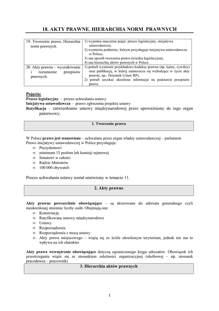 \(18. AKTY PRAWNE. HIERARCHIA AKT\323W PRAWNYCH\)