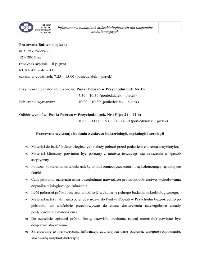 Informator o badaniach mikrobiologicznych dla pacjentów