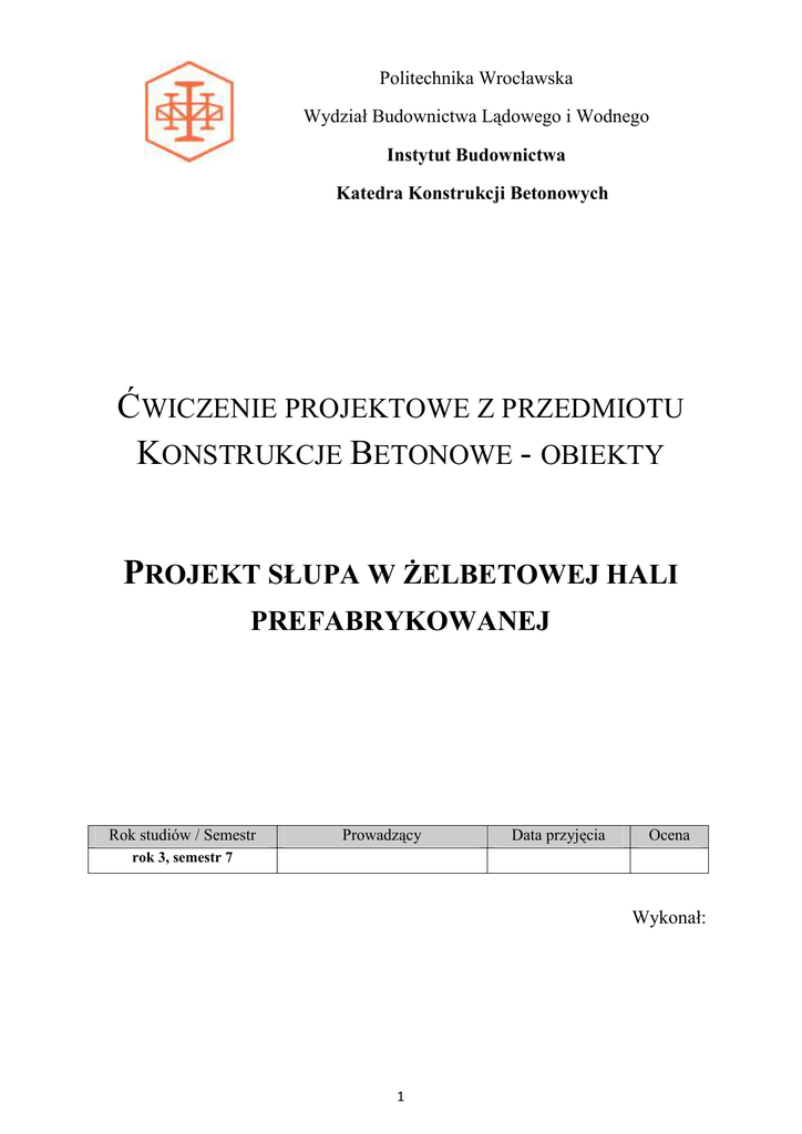 ćwiczenie projektowe z przedmiotu konstrukcje betonowe