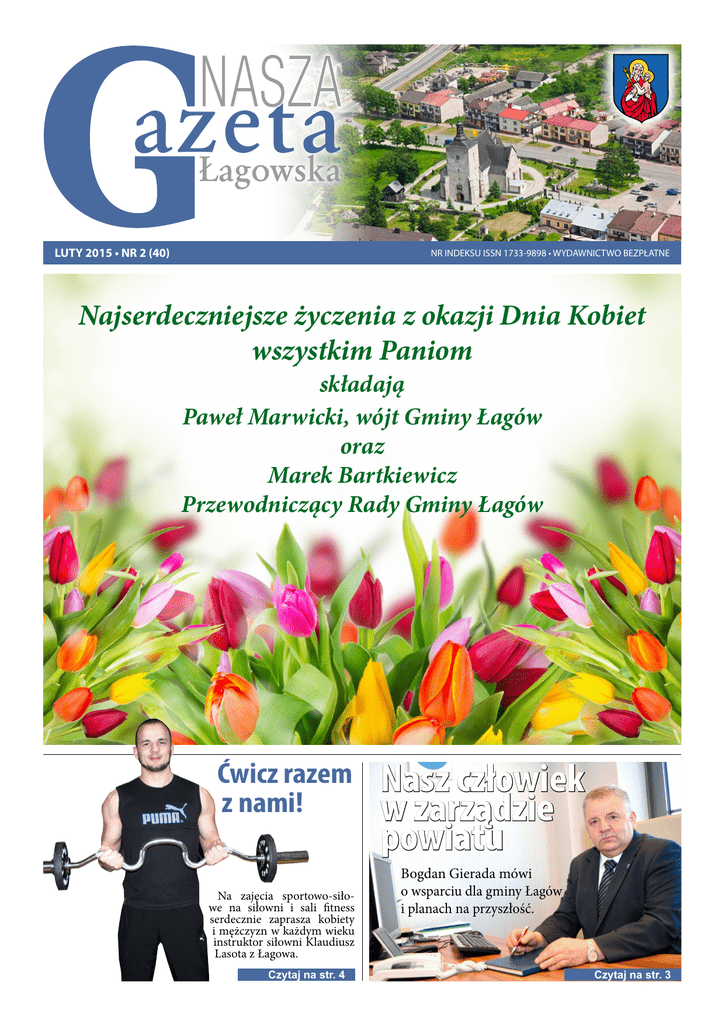 STYCZEŃ LUTY 20152015 • NR•2NR (40) 1 (XX) NR INDEKSU ISSN 1733-9898 • WYDAWNICTWO BEZPŁATNE Najserdeczniejsze życzenia z okazji Dnia Kobiet wszystkim Paniom składają Paweł Marwicki, wójt Gminy Łagów oraz Marek Bartkiewicz Przewodniczący Rady Gminy Łagów Ćwicz razem z nami! Na zajęcia sportowo-siłowe na siłowni i sali fitness serdecznie zaprasza kobiety i mężczyzn w każdym wieku instruktor siłowni Klaudiusz Lasota z Łagowa. Czytaj na str. 4 Nasz człowiek w zarządzie powiatu Bogdan Gierada mówi o wsparciu dla gminy Łagów i planach na przyszłość. Czytaj na str. 3 Strona 2 LUTY 2015 R. / NASZA GAZETA ŁAGOWSKA Pomoc żywnościowa dla mieszkańców gminy Łagów Darmowa nauka pływania dla uczniów O d marca do maja 2015 roku uczniowie klas II i III szkół podstawowych z terenu Gminy Łagów będą brali udział w realizacji projektu „Umiem pływać”. Z nauki pływania w ramach projektu skorzysta 60 uczniów ze szkół podstawowych z Łagowa, Piotrowa i Zbelutki. Zajęcia odbywać się będą w 4 grupach po 15 osób. Kurs nauki pływania przewiduje 20 wyjazdów po 1 godzinie zajęć na basenie dla każdego ucznia Gmina Łagów w realizację projektu wnosi wkład własny w postaci zapłaty za transport, tj. dowóz dzieci na pływalnię. Projekt zakłada systematyczny udział dzieci w zajęciach pozalekcyjnych, a jego głównym celem jest upowszechnienie aktywności fizycznej oraz nabycie podstawowych umiejętności pływania. Jest także świetną propozycją uczestniczenia w dodatkowych zajęciach sportowych dla uczniów, którzy chcą podejmować aktywność fizyczną również poza obowiązkowymi zajęciami wychowania fizycznego. Zachęca do systematycznego uprawiania sportu w czasie wolnym od nauki oraz do prowadzenia zdrowego i aktywnego stylu życia Operatorem programu wybranym przez Ministerstwo Sportu i Turystki został Wojewódzki Szkolny Związek Sportowy w Kielcach. 1300 mieszkańców otrzymało 18 ton produktów żywnościowych. QQ Los bezpańskich zwierząt nie jest nam obojętny Gmina Łagów podejmuje szereg działań, aby obejmować opieką bezpańskie zwierzęta oraz zapobiegać ich bezdomności. W 2015 roku na ten cel w budżecie zabezpieczone zostały środki w kwocie 45 000 złotych. Środki te przeznaczone będą na opiekę weterynaryjną, odławianie bezpańskich zwierząt, opiekę w schronisku oraz utylizację padłych bezpańskich zwierząt. Bezpańskie zwierzęta z terenu Gminy Łagów po odłowieniu trafiają do schroniska w Janiku lub przekazywane są do adopcji. Zachęcamy mieszkańców do adopcji bezpańskich zwierząt. W ramach adopcji takiego zwierzęcia zapewniamy sterylizację/kastrację i niezbędne szczepienia. Gmina pokrywa również, w całości koszt sterylizacji, kastracji i uśpienia ślepych miotów zwierząt domowych. Zabiegi te, finansowane są mieszkańcom naszej Gminy, po wypełnieniu stosownego oświadczenia, które można pobrać w Urzędzie Gminy i do wyczerpania środków finansowych przeznaczonych na ten cel. Żywność rozdawali strażacy ochotnicy. Gmina Łagów przystąpiła do realizacji Programu Operacyjnego Pomoc Żywnościowa 2014-2020 realizowanego w ramach Europejskiego Funduszu Pomocy Najbardziej Potrzebującym (FEAD). W tym roku organizacją odpowiedzialną za pozyskanie oraz dystrybucję żywności jest Ochotnicza Straż Pożarna w Łagowie. Pozyskano 18 ton żywności z przeznaczeniem dla 1 300 osób wskazanych przez Gminny Ośrodek Pomocy Społecznej w Łagowie spełniających kryteria dochodowe. Każda osoba kwalifikująca się do pomocy otrzymała następujące produkty żywnościowe: mleko, cukier, olej, makaron świderki oraz mie- Czekamy na Państwa opinie D rodzy Czytelnicy. Dziś oddajemy w Wasze ręce drugi numer „Naszej Gazety Łagowskiej” w nowej szacie graficznej. Mamy nadzieję, że bardziej nowoczesny układ gazety przypadnie Państwu do gustu. Żywimy wielką nadzieję że poruszane przez nas tematy sprawią, iż na stałe zagościmy w Państwa domach. Czekamy na Wasze opinie i propozycje tematów, którymi powinniśmy się zająć. Piszcie na adres: Redakcja „Naszej Gazety Łagowskiej”, ul. Iwańska 11, 26-025 Łagów, e-mail: [email protected] lub dzwońcie pod numer telefonu 41 30 74 603. Zespół redakcyjny „Naszej Gazety Łagowskiej” lonkę wieprzową. Żywność była wydawana w Remizie OSP w Łagowie przez strażaków ochotników z Łagowa. Składamy serdeczne podziękowania strażakom z Łagowa za przeprowadzoną akcję. A.K bezpłatny miesięcznik samorządowy gminy Łagów Wydawca: Urząd Gminy w Łagowie, ul. Iwańska 11, 26-025 Łagów tel. 41-30-74-603 Redaktor naczelny: Anna Kędziora [email protected] Druk: ART-SERWIS, tel. 513-01-04-04 Nakład: 1000 egz. Redakcja nie ponosi odpowiedzialności za treść reklam i ogłoszeń, nie zwraca nie zamówionych materiałów oraz zastrzega sobie prawo do ingerencji w nadesłane teksty. Strona 3 NASZA GAZETA ŁAGOWSKA \ LUTY 2015 R. Nasz człowiek w składzie Zarządu Powiatu Kieleckiego W ostatnich wyborach zdobył ponad dwa tysiące głosów. Po raz kolejny zasiada w Zarządzie Powiatu Kieleckiego. Zapewnia, że mieszkańcy Łagowa mogą na niego liczyć. Mowa o Bogdanie Gieradzie z Zamkowej Woli. Szkolenia dla rolników Wójt Gminy Łagów informuję rolników z terenu gminy Łagów, iż w dniach: 10.03.2015 r. Szkoła Podstawowa w Starej Zbelutce 13.03.2015 r. Remiza OSP w Piotrowie 16.03.2015 r. Remiza OSP w Łagowie odbędą się szkolenia na temat „Zasad wypełniania wniosków o przyznanie płatności obszarowych na 2015 rok”. Szkolenie poprowadzą pracownicy Agencji Restrukturyzacji i Modernizacji Rolnictwa w Kielcach. Wszelkie informacje pod nr telefonu: (41) 30-74-121 wew. 27. Serdecznie zapraszamy wszystkich zainteresowanych rolników. Ponad sto kobiet skorzystało z bezpłatnych badań mammograficznych i cytologicznych QQ Bogdan Gierada z Zamkowej Woli jest jedynym przedstawicielem naszej gminy 
