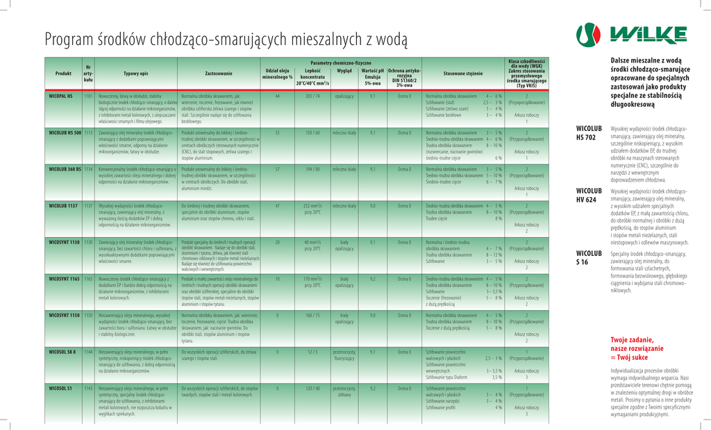 Program środków chłodząco-smarujących mieszalnych z wodą
