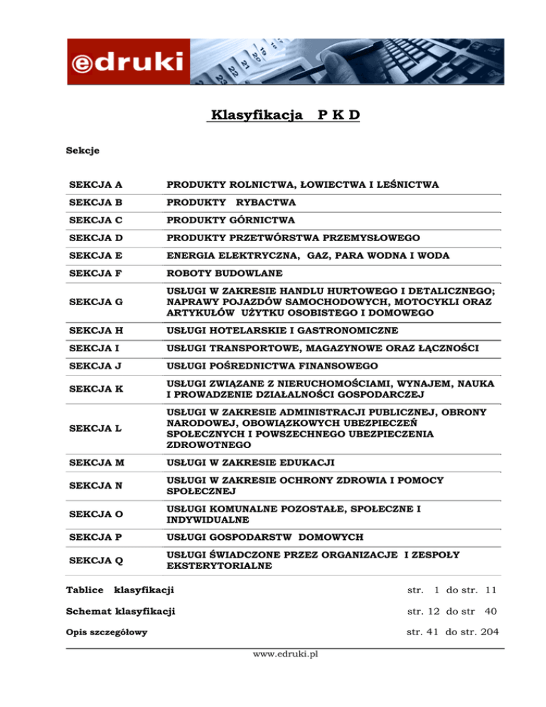 WYKAZ TABLIC KLASYFIKACYJNYCH