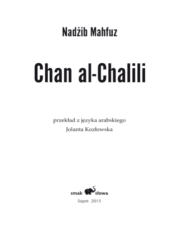 przekład z języka arabskiego Jolanta Kozłowska Sopot 2015 Chan al-Chalili 5 Przedmowa Powieść pt. Chan al‑Chalili (tytuł jest nazwą dzielnicy, ulicy, a tak że słynnego bazaru w pobliżu meczetu‑mauzoleum Al‑Husajna) została opublikowana w 1946 roku i była drugą z serii powieści społeczno‑obyczajowych napisanych przez Nadżiba Mahfuza w najbardziej twórczym okresie jego życia, przypadającym na lata 1945–1960. Oba dzieła łączy wiele wspólnych cech. Ich kcja toczy się we współczesnym Kairze, w starej dzielnicy, pamiętającej cza sy dynastii Fatymidów (X–XII w.), na ogół w biednych, ciasnych zaułkach skupionych wokół meczetów Al‑Husajna i Al-Azhar. Mieszkańcami tych uliczek byli drobni kupcy, sklepikarze, urzęd nicy niskiego szczebla, ludzie w większości niewykształceni. Nadżib Mahfuz doskonale znał tę dzielnicę. Urodził się, co praw da kilka ulic dalej – w Al‑Dżamalijji, małej, jednej z najstarszych i najbiedniejszych dzielnic Kairu – ale już jako kilkunastoletni chłopiec często bywał w Chan l-Chalili: przesiadywał w kawiar ni z kolegami, palił nargile i obserwował ludzi i obyczaje, które wydawały mu się tak odmienne, jak cała ta dziwna dzielnica. As ‑Sikka al‑Dżadida czy Al‑Azhar ze swoimi bardziej eleganckimi sklepami złotników – to były dla mieszkańców zaułków wielkie arterie, inna, luksusowa rzeczywistość. O tym, jak hermetyczny był świat Chan al‑Chalili świadczy fakt, że rodzina głównego bo hatera powieści, która przeprowadziła się tu z nie tak przecież odległej dzielnicy As‑Sakakini, również zamieszkałej przez kup ców i urzędników, bardzo odczuwa jej odrębność. Kiedy Ahmad Akif pierwszy raz wraca z pracy do domu w nowej dzielnicy, 6 Jolanta Kozłowska rozgląda się dokoła z zaciekawieniem, a gdy w końcu dzwoni do drzwi mieszkania, matka wita go słowami: „Zobaczyłeś już ten zadziwiający świat?” Wydarzenia przedstawione w powieści mają ściśle określone ramy czasowe. Rozpoczynają się we wrześniu 1941 roku w mo mencie, kiedy rodzina, uciekając przed nalotami w As‑Sakakini, osiedla się w dzielnicy Chan al‑Chalili, w pobliżu meczetu Al ‑Husajna, z którego powodu mówi się o niej „święta dzielnica”. Kończą się we wrześniu roku następnego. Ścisłemu określeniu czasu wydarzeń odpowiada ściśle określona topografia. Autor bardzo dokładnie informuje nas, gdzie rozgrywają się wydarzenia powieściowe. Mamy tu też drobiazgowy, prawie reporterski opis dzielnicy, jej atmosfery, zapachów (Ahmad zaraz pierwszej nocy czuje dochodzącą z ulicy dziwną woń, która okazuje się zapachem haszyszu, zapachem całej dzielnicy) i mieszkańców, przytaczane są ich dyskusje o polityce, o życiu, a także dowcipy. Mahfuz podaje numery tramwajów, domów, nazwy uliczek. W tej części Kairu niewiele się zmieniło i jeszcze do niedawna, a być może, i teraz utwory Mahfuza mogły służyć za przewodnik po dzielnicy wokół meczetu Al‑Husajna i Al‑Azhar. Powieść Chan al‑Chalili odgrywa ważną rolę w twórczości pisarza, stanowi bowiem jakby wstęp do jego najpopularniejsze go, a zarazem najlepszego w tym okresie dzieła, czyli „Trylogii” (polski tytuł to Opowieści starego Kairu). Pewne elementy jej konstrukcji zostały później powtórzone w Opowieściach, zwłasz cza w I i II tomie. Bohaterem jest w zasadzie rodzina, lecz akcja koncentruje się wokół jednej postaci, w Chan al-Chalili jest nią najstarszy syn, Ahmad Akif, którego portret psychologiczny przedstawia pisarz bardzo wnikliwie. Świetnie opisane są też postacie drugoplanowe. Po raz pierwszy ważną funkcję w struk turze powieści pełnią: dach, okno i maszrabijja, elementy tradycji i obyczajów, związanych z sytuacją kobiet zamkniętych w domu oraz młodych ludzi, dziewcząt i chłopców, których wzajemne Przedmowa 7 kontakty są zabronione, a przynajmniej bardzo utrudnione. Dziewczyny wychodzą na dach „pospacerować” (Chan al‑Chalili), kobiety zamężne – obejrzeć dzielnicę, w której mieszkają, ale której nie znają (Opowieści starego Kairu). Na dachu spotykają się potajemnie młodzi i wyznają sobie miłość, młodszy brat Ahmada, Ruszdi, uwodzi na dachu sąsiadkę, z którą już wcześniej, przez okno, nawiązał kontakt wzrokowy Ahmad (i obydwoje wyrażali swoje uczucia za pomocą mimiki). Chan al-Chalili obfituje w cie kawe obserwacje obyczajowe i pod tym względem dorównuje Opowieściom starego Kairu. Nadżib Mahfuz nazywany był ostatnim egipskim rawim (arab. rawi – opowiadacz, bajarz, gawędziarz) i rzeczywiście w sztuce opowiadania nie miał sobie równych. Nie wyjeżdżał z Kairu, tu miał wszystko, co kochał i co stanowiło inspirację jego twórczo ści. Kochał Kair i kairczyków, a kairczycy odwzajemniali tę miłość. Jolanta Kozłowska Chan al-Chalili Fot. Dennis Jarvis Chan al-Chalili 11 1 Wrześniowe popołudnie 1941 roku, godzina druga trzydzieści, koniec pracy w biurach. Z bram budynków ministerstw wylewa się potok urzędników głodnych i znudzonych. Rozchodzą się w różne strony, gonieni palącymi promieniami słońca. Ahmad Akif, urzędnik w Ministerstwie Robót Publicznych, wychodzi z grupą innych. Zwykle o tej porze zmierzał w stronę ulicy As ‑Sakakini, ale dzisiaj zmienił trasę i po raz pierwszy udał się w kierunku ulicy Al‑Azhar. Długie lata mieszkał w As‑Sakakini, tam zapuścił korzenie na całe życie, tam nagromadziły się wspo mnienia z dzieciństwa, młodości i wieku dorosłego. Dopiero od kilku dni myślał o przeprowadzce, rodzina czuła się bezpiecznie w starym mieszkaniu i wyobrażała sobie, że do końca życia się stamtąd nie wyprowadzi. Aż nagle, z dnia na dzień, zaczęły się rozlegać dokoła okrzyki: „Ta dzielnica to śmierć! Uciekajcie!” Strach zwyciężył, przerażeni ludzie nie chcieli słuchać żadnych rad. I tak oto stare mieszkanie stało się w