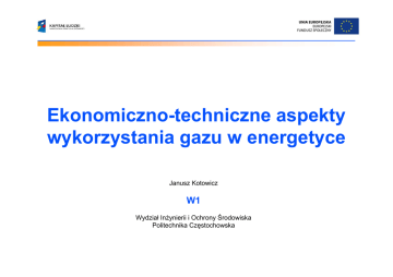 Ekonomiczno-techniczne aspekty wykorzystania gazu w energetyce Janusz Kotowicz W1 Wydział Inżynierii i Ochrony Środowiska Politechnika Częstochowska Układ prezentacji wykładów W1,W2,W3 1. Wprowadzenie 2. Zasoby gazu ziemnego na świecie 3. Zużycie gazu ziemnego w Polsce 4. Gazownictwo w Polsce 5. Zalety paliwa gazowego 6. Przykładowe parametry gazu 7. Koszty paliwa gazowego W1 Podstawowe wielkości charakteryzujące paliwa gazowe Rodzaje i postaci energii Energia pierwotna - energia chemiczna zawarta w paliwie w miejscu i stanie w jakim paliwo pierwotnie się znajdowało. Nośnikami energii pierwotnej są np. organiczne paliwa kopalne, paliwa jądrowe czy odnawialne źródła energii. Energia finalna - ilość energii użytecznej uzyskana z paliwa po uwzględnieniu strat wynikających z konwersji, transportu etc. Nośnikami energii wtórnej są np. energia elektryczna, ciepło, koks, gazy opałowe, produkty przerobu ropy naftowej. Rodzaje i postaci energii Energia pierwotna: odnawialna i nieodnawialna. Energetyczne zasoby odnawialne: energia promieniowania słonecznego, energia fal morskich i pływów oceanicznych, energia biomasy, energia wiatru, energia związana z istnieniem gradientów temperatury w morzach i oceanach, energia cieków wodnych, energia geotermalna. Rodzaje i postaci energii Energetyczne zasoby nieodnawialne: Paliwa organiczne: węgiel kamienny i brunatny, ropa naftowa, gaz ziemny, gaz syntezowy, torf, drewno, łupki bitumiczne, Paliwa jądrowe rozszczepialne: uran, tor, Paliwa jądrowe energii syntezy: deuter, lit, hel. Ocena ilościowa zasobów Jednostki masy (Mg, mn3), tona paliwa umownego (tpu) – tona paliwa o wartości opałowej równej 7000 kcal/kg (dla oceny zasobów paliw stałych): 1 tpu = 103 kg ⋅ 7000 kcal = 29,3076 ⋅109 J = 8,141 MWh kg tona oleju ekwiwalentnego (toe) (dla oceny zasobów paliw ciekłych): 1 toe = 1,4286 tpu = 41,86 GJ przeliczeniowy metr sześcienny normalny (mn3): 1 (m 3n ) p = 8200 kcal = 34,33 ⋅106 J = 34,33 MJ Przedrostki do tworzenia nazw jednostek wtórnych Jednostki wielokrotne Przedrostek Skrót 10n deka da 10 hekto h 102 kilo k 103 mega M 106 giga G 109 tera T 1012 peta P 1015 eksa E 1018 Zużycie energii pierwotnej (2006) Zużycie energii pierwotnej - Świat 2006 (13000 Mtoe) 11,1% 6,7% 0,4% 2,3% 22,2% węgiel ropa naftowa gaz ziemny paliwa jądrowe biomasa wodna inna odnawialna 22,0% 35,3% Zużycie energii pierwotnej - Polska 2006 (110 Mtoe) 0,0% 12,0% 5,4% 0,6% 0,01% węgiel ropa naftowa gaz ziemny paliwa jądrowe biomasa wodna inna odnawialna 22,0% 60,0% Zużycie energii finalnej – Świat (2006) 13,6% 4,1% 11,0% węgiel ropa naftowa gaz ziemny elektryczność biomasa i odpady inna odnawialna 40,9% 14,3% 16,1% Prognozy energetyczne Zużycie energii pierwotnej na świecie Prognozy energetyczne Prognoza światowego zapotrzebowania energii i jego struktura w latach 2001 – 2030 w EJ (EJ = 1018 J) Rodzaj energii pierwotnej Energia pierwotna, EJ 2001 r. 2030 r. Wzrost zużycia Udziały, % Węgiel 98,6 151,0 1,53 23,4 22,1 Ropa naftowa 150,9 241,5 1,6 35,7 35,4 Gaz ziemny 87,3 176,0 2,01 20,7 25,8 Energia jądrowa 28,2 29,4 1,04 6,7 4,3 Energia wodna 9,6 15,3 1,59 2,2 2,2 Pozostałe OZE 47,8 69,2 1,48 11,3 10,2 Świat ogółem 423,3 682,4 1,61 100,0 100,0 2001 r. 2030 r. Prognoza światowej produkcji energii elektrycznej Prognoza światowej produkcji energii elektrycznej według struktury rodzajów paliw w latach 2001 – 2030 Energia pierwotna Energia elektryczna, TWh 2001 r. 2030 r. Wzrost produkcji Udziały, % Węgiel 5989 11591 1,94 38,9 36,8 Paliwa ciekłe 1241 1326 1,07 8,1 4,2 Gaz ziemny 2676 9923 3,45 17,4 31,4 Wodór (ogniwa paliwowe) 0 349 - - 1,1 Paliwa jądrowe 2586 2697 1,04 16,8 8,6 Energia wodna 2650 4259 1,61 17,2 13,5 Pozostałe OZE 249 1381 5,55 1,6 4,4 Świat ogółem 15391 31524 2,05 100,0 100,0 2001 r. 2030 r. Kluczowe dane dla polskiej energetyki (2004) Rodzaj energii Zużycie energii pierwotnej Produkcja krajowa Import netto Końcowe zużycie energii Mtoe Produkcja energii elektrycznej TWh Paliwa stałe 54,6 69,2 -14,6 11,3 141,6 Ropa naftowa 22,0 1,5 20,9 17,3 2,5 Gaz 11,9 3,9 8,1 8,3 5,0 -0,8 8,6 Paliwa jądrowe Elektryczność Źródła odnawialne 4,3 4,3 3,9 3,1 Inne -0,3 0,5 7,5 1,9 Razem 92,5 79,5 56,9 154,2 13,6 Kluczowe wskaźniki dla polskiej energetyki (2004) Wskaźnik Polska UE-27 Energia na mieszkańca (kgoe/cap) 2423 3689 Uzależnienie od importowanej energii (%) 14,7 50,1 Emisja CO2 (Mt) 292 4004 Intensywność CO2 (tCO2/toe) 3,2 2,2 CO2 na mieszkańca (kg/cap) 7652 8180 Podstawowe paliwa gazowe Gaz ziemny wysokometanowy (najczęściej systemowy): LNG (gaz ziemny płynny), CNG (sprężony gaz ziemny), gaz ziemny zaazotowany, biogazy: gaz z fermentacji biologicznej (np. z oczyszczalni ścieków), gaz wysypiskowy, gaz ze zgazowania biomasy (piroliza biomasy), gaz LPG (propan – butan), gaz z odmetanowania kopalń, gaz ze zgazowania węgla, wodór: wysokotemperaturowe układy gazowe (układy przyszłościowe), ogniwa paliwowe (niskotemperaturowe utlenianie wodoru), gaz koksowniczy, gazy przemysłowe (wielkopiecowy, konwertorowy itp.). Podstawowe wielkości charakteryzujące paliwa gazowe Parametry fizykochemiczne: skład (udziały objętościowe/molowe): składniki palne: CH4, C2H6, CmHn, H2, CO składniki niepalne: N2, O2, CO2 wartość opałowa Wd jest to energia uzyskana ze spalenia jednostki masy lub jednostki objętości paliwa przy jego całkowitym i zupełnym spalaniu, przy założeniu, że para wodna zawarta w spalinach nie ulega skropleniu, wyrażana np. w MJ/kmol, MJ/mn3 (MJ/kg), gęstość w warunkach normalnych (0ºC, 1 atm) ρ, kg/m3, prędkość spalania (m/s), zależna od stosunku nadmiaru powietrza do spalania λ, Podstawowe wielkości charakteryzujące paliwa gazowe liczba metanowa LM - odporność paliwa na spalanie stukowe, im większa wartość liczby metanowej, tym większa odporność paliwa na spalanie stukowe. CH4: LM = 100; H2: LM = 0, Wartość liczny met