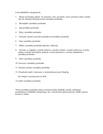 Lista składników alergennych: