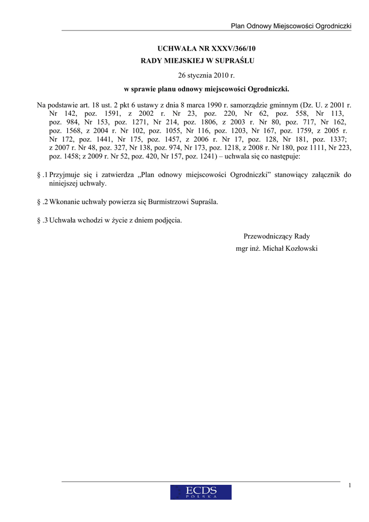 366 w sprawie planu odnowy miejscowości Ogrodniczki