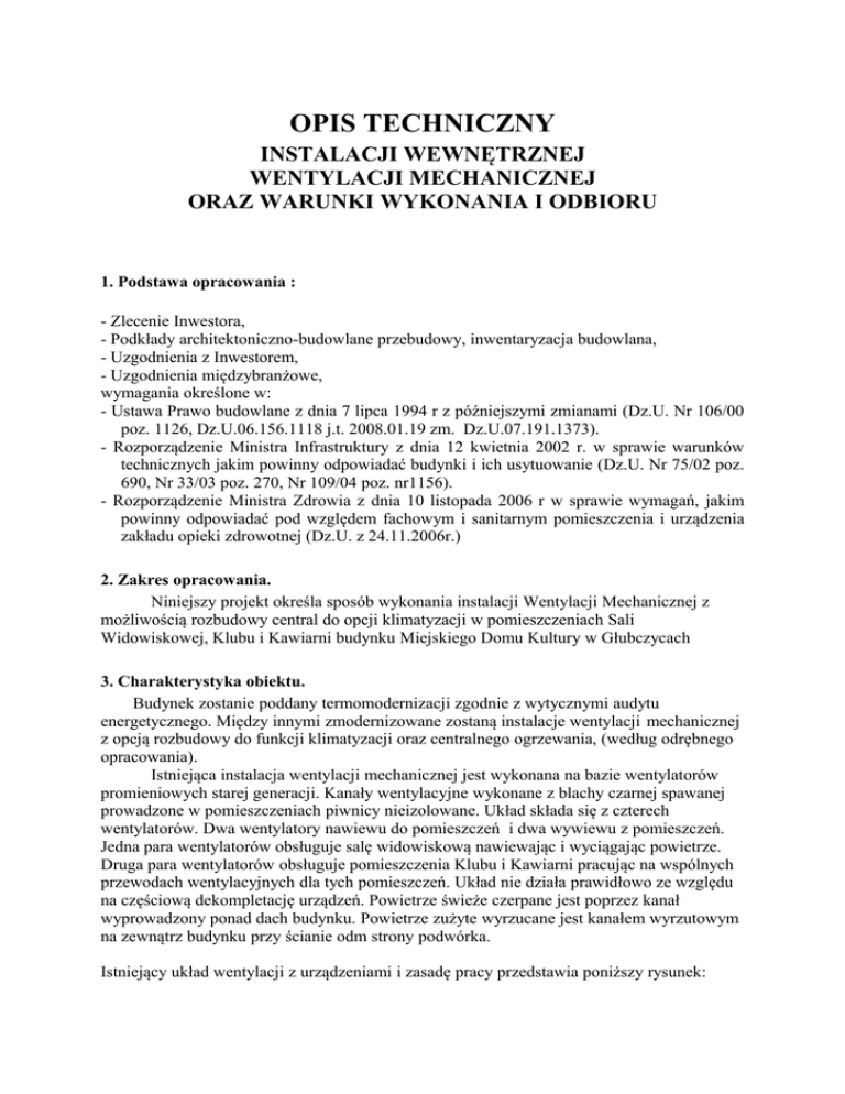 opis techniczny instalacji wewnętrznej wentylacji mechanicznej oraz