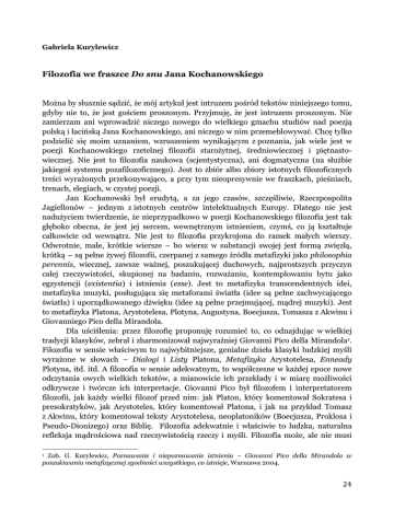 II. Gabriela Kurylewicz, Filozofia we fraszce Do snu Jana