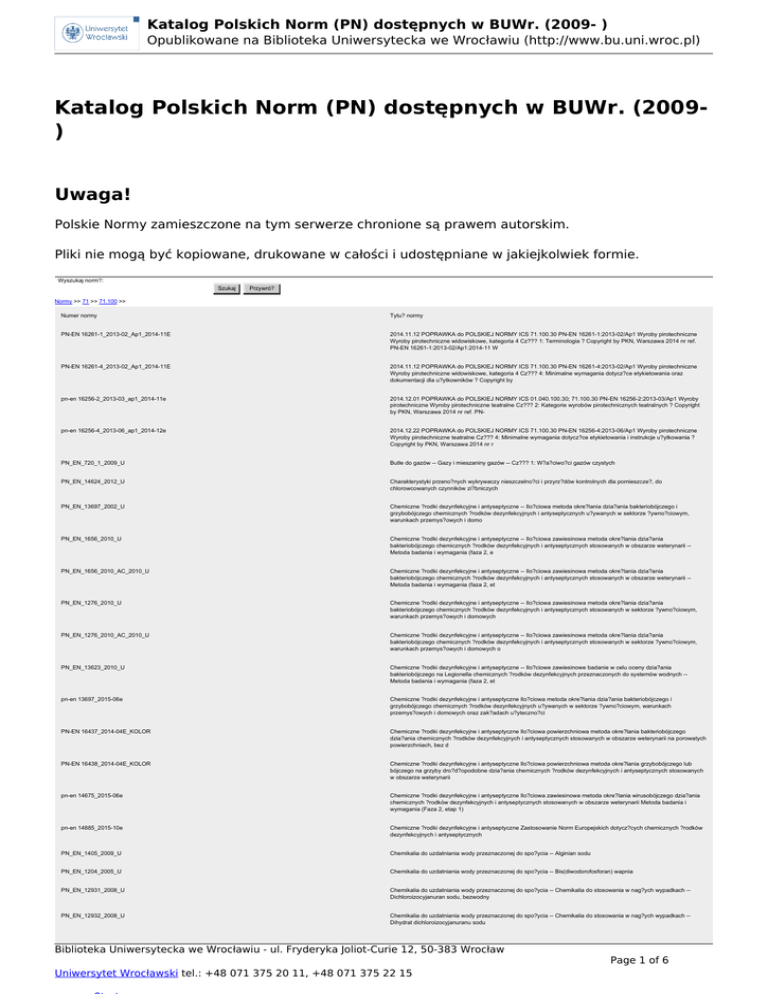 (PN) dostępnych w BUWr. (2009- ) - Biblioteka Uniwersytecka we