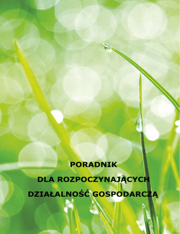 PORADNIK DLA ROZPOCZYNAJĄCYCH DZIAŁALNOŚĆ GOSPODARCZĄ PORADNIK DLA ROZPOCZYNAJĄCYCH DZIAŁALNOŚĆ GOSPODARCZĄ Szczytniki, 2014 Spis treści MOJA WŁASNA FIRMA - ZOSTAJĘ SZEFEM.................................................... 6 Samozatrudnienia jako alternatywa dla etatu. Czy warto mieć własny biznes?.......6 Stereotypy w podejmowaniu działalności.........................................................7 Korzyści z samozatrudnienia we współpracy z dotychczasowym pracodawcą.........8 Jakie są więc zalety współpracy ze swoim dotychczasowym pracodawcy?.............8 DECYZJA O REJESTRACJI FIRMY – KTÓRA FORMA DZIAŁALNOŚCI............... 9 Formy prowadzenia działalności gospodarczej...................................................9 Podstawowe różnice pomiędzy proponowanymi formami prowadzenia działalności gospodarczej.......................................................... 13 KROK PO KROKU - ETAPY REJESTRACJI FIRMY.......................................... 14 Wybór nazwy i adresu firmy......................................................................... 14 Określenie rodzaju działalności .................................................................... 15 Zakładanie jednoosobowej działalności gospodarczej....................................... 16 Aspekty formalne wpisu do ewidencji ........................................................... 18 Zakładanie spółki cywilnej............................................................................ 18 Obowiązki rejestracyjne – ZUS, Urząd Skarbowy............................................. 19 Wysokość i rodzaj składek ZUS..................................................................... 19 Urząd Skarbowy......................................................................................... 20 Wyrobienie pieczątki firmowej i założenie rachunku bankowego........................ 21 WYBÓR FORMY OPODATKOWANIA JEDNOOSOBOWEJ FIRMY LUB SPÓŁKI CYWILNEJ............................................................................... 22 Zasady ogólne . ......................................................................................... 23 Karta podatkowa........................................................................................ 24 Ryczałt od przychodów ewidencjonowanych.................................................... 25 Podatek od towarów i usług (VAT)................................................................. 26 ROZWÓJ FIRMY W OPARCIU O ZEWNĘTRZNE FORMY WSPARCIA............... 29 Dotacje z Urzędów Pracy............................................................................. 29 Dotacje i pożyczki unijne............................................................................. 30 Poręczenia i gwarancje de minimis................................................................ 32 Kredyt bankowy ........................................................................................ 32 Leasing..................................................................................................... 32 Dofinansowane szkolenia i studia podyplomowe.............................................. 33 ZATRUDNIANIE PRACOWNIKA................................................................... 34 Jak poszukiwać pracowników?...................................................................... 34 Formy zatrudnienia..................................................................................... 36 PRAKTYCZNE RADY.................................................................................... 41 Wybór i podejmowanie współpracy z biurem rachunkowym.............................. 41 Współpraca z partnerami biznesowymi.......................................................... 42 Podejmowanie współpracy z nowymi klientami i poszukiwanie nowych ofert sprzedaży.................................................................................................. 43 Przydatne adresy internetowe...................................................................... 44 KALENDARIUM PRZEDSIĘBIORCY – czyli terminy, o których nie wolno zapomnieć.................................................................. 45 INSTYTUCJE OTOCZENIA BIZNESU ............................................................ 46 5 MOJA WŁASNA FIRMA - ZOSTAJĘ SZEFEM Samozatrudnienia jako alternatywa dla etatu. Czy warto mieć własny biznes? Obecnie, gdy duża część przedsiębiorców ogranicza liczbę pracowników, wiele osób decyduje się na założenie własnego biznesu. Mimo krążących w społeczeństwie mitów i stereotypów o prowadzeniu własnej firmy widać, że niewielkie biznesy bardzo dobrze radzą sobie na rynku. Małe firmy stanowią bowiem ponad 90% wszystkich polskich przedsiębiorstw. Prowadząc własną działalność mamy realny wpływ na jej kształt i jakość świadczonych usług. Co więcej, możemy samodzielnie decydować o wyborze kontrahentów i dopasować godziny pracy do potrzeb życia prywatnego. Osoby prowadzące własną firmę często chwalą sobie niezależność, pracę na własny rachunek oraz szerokie pole do rozwoju osobistego. Prowadzenie własnej firmy w formie samozatrudnienia, tj. indywidualnej działalności jest korzystne z wielu względów. Poniżej kilka z nich: Brak uciążliwych formalności przy zakładaniu, modyfikacji, zamykaniu działalności Możesz realizować swoje pomysły Nie trzeba posiadać kapitału zakładowego Jeśli działalność nie wymaga licencji, koncesji – wystarczy tylko wpis do ewidencji przedsiębiorców Podział praw i obowiązków w firmie ustalasz Ty Masz większy wybór form opodatkowania W razie niepowodzenia możesz na dwa lata zawiesić działalność i przeczekać kryzys Jak każda forma prowadzenie firmy samozatrudnienie i związana z tym niezależność ma także swoje wady: Za zobowiązania firmy odpowiadasz Ty — całym swoim majątkiem, bo przecież firma to Ty Możesz mieć trudności w pozy