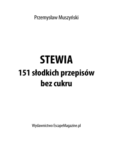 Przemysław Muszyński STEWIA 151 słodkich przepisów bez cukru Wydawnictwo EscapeMagazine.pl Stewia. 151 słodkich przepisów bez cukru Przemysław Muszyński Wydanie pierwsze, Toruń 2013 ISBN: 978-83-61744-68-9 (edycja drukowana) 978-83-61744-66-5 (edycja elektroniczna) Wszelkie prawa zastrzeżone! Autorzy oraz Wydawnictwo dołożyli wszelkich starań, aby informacje zawarte w tej publikacji były kompletne, rzetelne i prawdziwe. Autorzy oraz Wydawnictwo nie ponoszą żadnej odpowiedzialności za ewentualne szkody wynikające z wykorzystania informacji zawartych w publikacji lub użytkowania tej publikacji. Wszystkie znaki występujące w publikacji są zastrzeżonymi znakami firmowymi bądź towarowymi ich właścicieli. Rozpowszechnianie całości lub fragmentu w jakiejkolwiek postaci jest zabronione. Kopiowanie, kserowanie, fotografowanie, nagrywanie, wypożyczanie, powielanie w jakiekolwiek formie powoduje naruszenie praw autorskich. Wydawnictwo EscapeMagazine.pl http://www.EscapeMagazine.pl Wstęp 10 Rozdział 1. Co to jest stewia? 11 Pod jakimi postaciami dostępna jest na rynku? 12 Do czego stewia się nadaje? 15 Dawkowanie 16 Do czego stewia się nie nadaje? 17 Uprawa 19 Uwagi dotyczące przepisów 21 Rozdział 2: Ciasta 22 Biszkopt ze skórką pomarańczową 23 Ciasteczka owsiane 24 Ciasteczka z czekolady 25 Ciasto bananowe 26 Ciasto czekoladowo-biszkoptowe 27 Ciasto kasztanowe 29 Ciasto kokosowe 31 Ciasto marchewkowe 32 Ciasto truskawkowo-kokosowe 34 Crumble 36 Florentynki 37 Pralinki 38 Rolada czekoladowa 39 Sernik cytrynowy 42 Suflet cappuccino 44 Szarlotka z imbirem 46 3 Tiramisu Trufle kardamonowo-szafranowe Tabela do rozdziału 2 Rozdział 3. Torty, ciasta wielkanocne i wigilijne Keks świąteczny Kutia bez cukru Makowiec staropolski Makowiec świąteczny typu zawijaniec Mazurek wielkanocny Pierniczki choinkowe Piernik wigilijny Sernik świąteczny Tort biszkoptowo-migdałowy Tort francuski Tort gruszkowy Tort owocowy Tabela do rozdziału 3 Rozdział 4. Tarty i ich krewniacy Flan migdałowo-cytrynowy Tarta czekoladowo-jeŜynowa Tarta sernikowa Tarta z bananami Tarta z figami Tarta z jabłkami Tarta z owocami Tabela do rozdziału 4 4 48 49 50 52 53 55 56 58 60 62 64 66 68 70 73 75 77 78 79 80 83 85 86 87 88 89 Rozdział 5: Ciasta bez pieczenia Ciasto z lodówki Pudding owocowy Sernik czekoladowy bez pieczenia Sernik na zimno Tabela do rozdziału 5 Rozdział 6: Dania z owoców Bakaliowe gruszki z węgli Banany w cieście Brzoskwinie winiarza Grillowane banany w sosie czekoladowym Grzanki czekoladowo-truskawkowe Figi z makiem i pistacjami Figi zapiekane Figowe lasagne Fondue czekoladowe Jabłka pieczone Jesienne gruszki Mango po portorykańsku Morele faszerowane mielonym mięsem Morele w czerwonym winie Morele z nadzieniem kremowym Owocowe szaszłyki Owocowe szaszłyki po karaibsku Płonące szaszłyki tropikalne Winogrona marynowane 90 91 92 94 96 97 98 99 100 101 103 105 106 108 110 111 113 115 116 118 119 121 122 124 126 127 5 Tabela do rozdziału 6 Rozdział 7: Słodkie obiady Curry róŜane Łosoś zapiekany z truskawkami Makaron z chili i truskawkami Pierogi z jagodami Risotto ze świeŜ. winogronami i rodzynkami Schab w winogronach Tabela do rozdziału 7 Rozdział 8: Chłodniki i zupy owocowe Chłodnik malinowo-morelowy Chłodnik piwno-pigwowy z bakaliami Chłodnik truskawkowo-melonowy Chłodnik wiśniowy Chłodnik z truskawek Zupa z róŜy Zupa z winogron Tabela do rozdziału 8 Rozdział 9: Naleśniki, racuchy i omlety Czarny bez w cieście naleśnikowym Czekoladowe naleśniki z owocami Naleśniki kokosowe Naleśniki z serem Naleśniki z wiśniami Omlet cesarski Omlet jagodowy 6 129 131 132 134 136 137 138 140 142 143 144 145 147 149 150 151 152 154 155 156 157 160 162 164 166 169 Omlet z marchewką Racuchy bananowe Racuchy z cynamonem i jagodami Tabela do rozdziału 9 Rozdział 10: Desery Bita śmietana Deser cytrynowy Deser czekoladowy Deser ryŜowo-pistacjowy Deser szwajcarski Domowa czekolada bez cukru Domowa galaretka bez cukru Domowy budyń bez cukru Kisiel domowy bez cukru Krem angielski Krem pomarańczowy Krem z moreli Mus mascarpone Mus z mango Pudding ryŜowy Zabajone Tabela do rozdziału 10 Rozdział 11: Lody Granita kawowa Jabłka z lodami Lody cynamonowe 170 171 172 174 175 176 177 178 179 180 181 182 184 186 188 189 191 193 195 197 199 200 201 202 203 204 7 Lody cytrynowe Lody kokosowe Lody lawendowe Lody miętowe Lody orzechowe Lody pistacjowe Lody rumowe Lody śmietankowe Lody z zielonej herbaty Lody Stracciatella Lody truskawkowe Lody waniliowe Orientalny sorbet mleczny Płonący deser lodowy Sorbet bananowy Sorbet lodowy Sorbet z kiwi i mięty Sorbet z mango Sorbet z melonów i arbuzów Tort lodowy Tabela do rozdziału 11 Rozdział 12: Sałatki owocowe Egzotyczna sałatka owocowa Melon w mleczku kokosowym Sałatka krewetkowo-truskawkowa Sałatka szpinakowo-truskawkowa 8 205 206 207 209 211 212 214 217 218 220 221 222 223 224 225 226 227 228 229 231 233 235 236 238 240 242 Sałatka truskawkowo-imbirowa Sałatka z fig i łososia Sałatka z mango Sałatka z marynowanych śliwek Sałatka z pomarańczy i chili Sałatka z pomelo Sałatka z szynki parmeńskiej i fig Truskawki z serem pleśniowym Tabela do rozdziału 12 Rozdział 13: Napoje bezalkoholowe Batido Czekolada do picia Herbata szafranowo-kardamonowa Kawa mroŜona Koktajl truskawkowy Kompot z suszonych owoców Kompot z truskawek Lassi miętowo-pistacjowe Napój arbuzowo-imbirowy Napój mangowo-kokosowy Tabela do rozdziału 13 Rozdział 14: Napoje wyskokowe Daiquiri Grzaniec z kardamonem i chili Poncz tropikalny Pseudo-mojito z arbuzem 244 246 248 250 251 254 256 258 260 261 262 263 264 265 266 267 268 269 270 271 272 273 274 277 278 279 9 Sangria cytrusowa Sangria brzoskwiniowa Zielona sangria Tabela do rozdziału 14 Inne ksiąŜki autora 10 281 284 286 287 288 Wstęp Publikacja składa się z dwóch części. W pierwszej wyjaśniam, czym jest stewia, do czego się nadaje, a do czego nie. Chcia