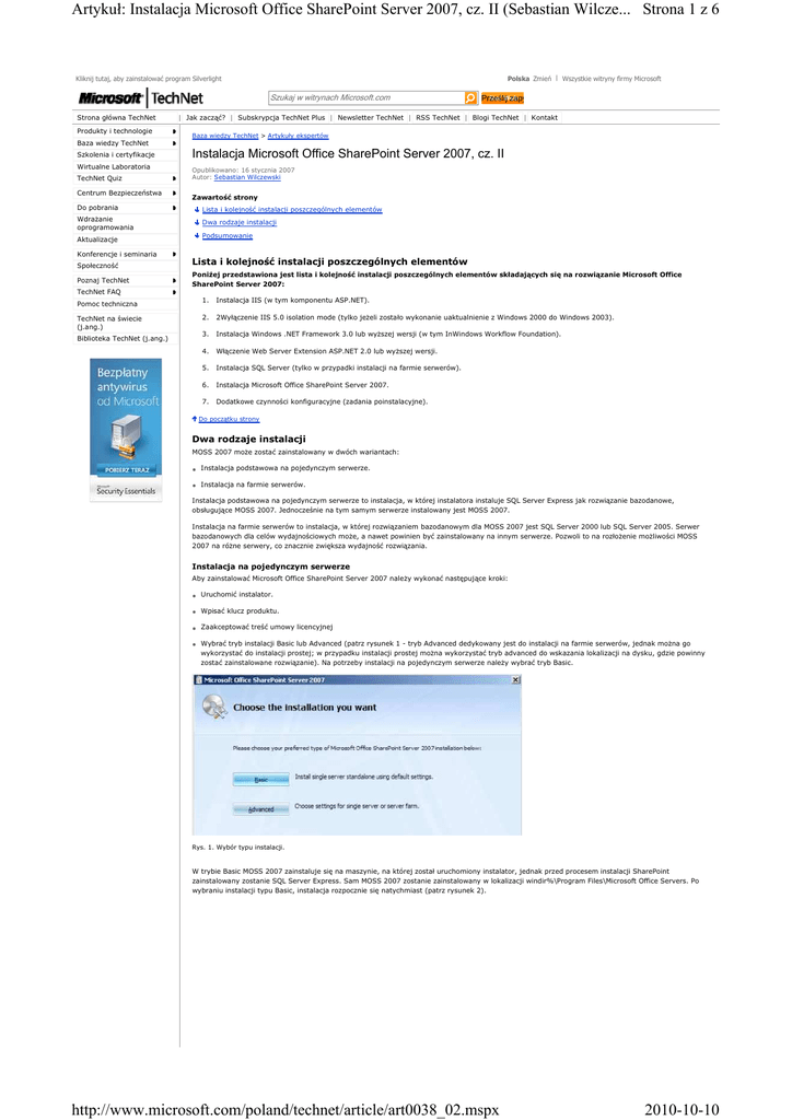 Strona 1 z 6 Artykuł: Instalacja Microsoft Office SharePoint Server