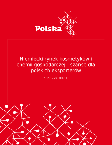 Niemiecki rynek kosmetyków i chemii gospodarczej - szanse dla polskich eksporterów 2015-12-27 00:17:17 2 Niemcy to największy w UE rynek kosmetyków i chemii gospodarczej (17 mld EUR), z wysokim udziałem produkcji własnej (11 mld EUR - 8 % całości produkcji przemysłu chemicznego w Niemczech) oraz dodatnim dla branży saldem wymiany z zagranicą (+4,5 mld EUR). Różnica w bilansie pomiędzy produkcją własną a saldem w wymianie wynika ze stosowania w statystykach potencjału rynku cen detalicznych, a dla produkcji cen sprzedaży hurtowej. Niemiecki rynek kosmetyków i chemii gospodarczej - szanse dla polskich eksporterów Niemcy to największy w UE rynek kosmetyków i chemii gospodarczej (17 mld EUR), z wysokim udziałem produkcji własnej (11 mld EUR - 8 % całości produkcji przemysłu chemicznego w Niemczech) oraz dodatnim dla branży saldem wymiany z zagranicą (+4,5 mld EUR). Różnica w bilansie pomiędzy produkcją własną a saldem w wymianie wynika ze stosowania w statystykach potencjału rynku cen detalicznych, a dla produkcji cen sprzedaży hurtowej. Na liście Brand Finance 50 największych światowych marek kosmetycznych w 2013 r. znajdują się wprawdzie tylko 3 marki niemieckie (Nivea, Schwarzkopf i Eucerin), ale z wartością 5,8 mld USD daje to marce Nivea 4. miejsce ww. rankingu marek na świecie. Niemieckie koncerny kosmetyczne takie jak Beiersdorf AG czy chemii gospodarczej jak Henkel AG mają swoje zakłady produkcyjne na całym świecie, także w Polsce, skąd cześć produkcji jest eksportowana do innych krajów, w tym do Niemiec. W Niemczech z kolei zakłady produkcyjne mają także i inne światowe koncerny zarówno z UE jak i USA. Wydatki niemieckich firm ww. branży na B+R wynoszą rocznie od 2,5 do5% obrotu, a na reklamę 1,7 mld EUR (w samym w 2012 r., czyli 8,5% wszystkich wydatków na reklamę w Niemczech). W przeliczeniu na 1 mieszkańca wydatki w Niemczech na kosmetyki wynoszą ok. 160 EUR i na chemię gospodarczą ok. 55 EUR rocznie. Plasuje to niemiecki rynek pod tym wzgledem raczej pod koniec pierwszej dziesiątki krajów UE, ale jednocześnie świadczy o nadal dużym potencjale rynkowym. Szczególnie szybko rosnącym segmentem rynku jest rynek kosmetyków naturalnych ( ok. 12% całości rynku w 2012 r.). Dobra sytuacja na rynku pracy, rosnące oczekiwania płacowe i podwyżki taryfowe, niska inflacja, niewielka skłonność do oszczędzenia przy niskich odsetkach, wysokie dodatki rodzinne oraz różne ulgi podatkowe, wzmacniają siłę nabywczą niemieckich gospodarstw domowych (wg prognoz wydatki konsumpcyjne wzrosną w 2013 r. o 2,3% przy tylko 0,4% wzroście niemieckiego PKB). • 1. Struktura i rozwój niemieckiego rynku kosmetyków i chemii gospodarczej w 2012 r. Jak wynika z tabeli nr 1 w 2012 roku niemiecki rynek artykułów kosmetycznych odnotował wzrost o 1,4%, a chemii gospodarczej o 0,9%. W przypadku niektórych artykułów wzrost był ponadprzeciętny (np. w sprzedaży środków do kąpieli, zapachowych, pielęgnacji niemowląt czy do depilacji oraz w chemii gospodarczej w przypadku proszków do prania czy mycia naczyń). Tylko w niektórych grupach towarowych odnotowano wyraźny spadek sprzedaży (odpowiednio w środkach do pielęgnacji stóp czy do goleniu oraz w chemii w przypadku środków do pielęgnacji aut oraz zapachowych do pomieszczeń mieszkalnych). W ocenie Niemieckiego Zrzeszenia Producentów Kosmetyków i Chemii Gospodarczej, w 2013 r. - mimo stosunkowo dobrej ogólnej sytuacji w zakresie poziomu wydatków konsumpcyjnych - wartość sprzedaży dla obu branż wzrośnie tylko o ok. 0,5%, głównie z powodu ostrej konkurencji cenowej na rynku oraz wstrzemięźliwości konsumentów przy kupnie drogich artykułów markowych. Tabela nr 1 Struktura niemieckiego rynku kosmetyków i chemii gospodarczej w latach 2011-2012 3 2012 (w mln EUR) Kosmetyki 2011 (w mln EUR) 2012/2011 w% do pielęgnacji włosów 2.998 3.018 +0,7 do pielęgnacji skóry i twarzy 2.780 2.796 +0,6 pasty i płyny do zębów 1.370 1.390 +1,5 kosmetyki upiększające 1.352 1.379 2,0 środki zapachowe damskie 1.042 1.071 +2,8 płyny i dodatki do kąpieli 813 850 +4,5 dezodoranty 723 737 +2,0 środki zapachowe męskie 506 523 +3,3 mydła 366 366 0,0 środki przed i po goleniu 166 162 -2,8 środki do golenia 110 109 -1,0 kosmetyki do pielęgnacji stóp 160 153 -4,0 środki do depilacji 148 154 +4,3 4 środki do pielęgnacji niemowląt (poza szamponami i mydłem) 138 142 +3,1 Razem 12.673 12.851 +1,4 Chemia gospodarcza 2011 (w mln EUR) 2012 (w mln EUR) 2012/2011 w% proszki i płyny do prania 1.120 1.176 +5,0 środki do prania specjalne 202 200 -0,8 środki pomocnicze do prania (do usuwania plam, impregnaty, krochmale itp.) 322 314 -2,6 płyny do płukania tkanin 303 309 +2,0 środki do mycia naczyń 679 696 +2,5 środki czyszczące 855 853 -0,2 środki do pielęgnacji domu 80 74 -7,1 środki do pielęgnacji wyrobów ze skóry 66 66 0,0 środki zapachowe do pomieszczeń i owadobójcze 385 388 +0,6 5 środki do pielęgnacji aut 272 247 -9,0 Razem 4.284 4.324 +0,9 Źródło: Zrzeszenie Producentów Kosmetyków i Chemii Gospodarczej (IKW) • 2. Główne kanały dystrybucji kosmetyków i chemii gospodarczej w Niemczech W przypadku rynku kosmetyków kanałem dystrybucji o największych obrotach są drogerie, głównie sieciowe typu Rossmann, DM czy Müller. Ich udział w rynku kosmetyków sięga prawie 50%. Wyspecjalizowane w sprzedaży wysokiej klasy kosmetyków i praktycznie tylko kosmetyków niemieckie perfumerie, posiadają prawie 20%-owy udział w obrotach, a tuż za nimi z 17%-owym udziałem w rynku znajdują sklepy wielobranżowe (sprzedające i żywność, i chemię gospodarczą, i drobny sprzęt gospodarstwa domowego i szereg innych artykułów codziennego użytku). Zauważalny jest stopniowy wzrost zakupów przez Internet, często w ramach internetowych sklepów renomowanych drogerii. Sprzedaż kosmetyków w znanych niemieckich hurtowniach typu Metro czy 