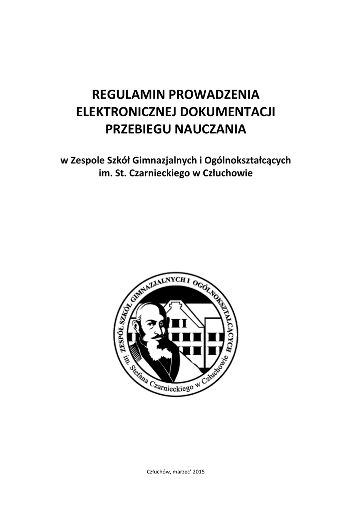 REGULAMIN PROWADZENIA ELEKTRONICZNEJ DOKUMENTACJI PRZEBIEGU NAUCZANIA w Zespole Szkół Gimnazjalnych i Ogólnokształcących im. St. Czarnieckiego w Człuchowie Człuchów, marzec’ 2015 Spis treści ROZDZIAŁ 1. POSTANOWIENIA OGÓLNE _____________________________________________ 3 ROZDZIAŁ 2. KONTA W IDZIENNIKU_________________________________________________ 4 ROZDZIAŁ 3. PRZEKAZYWANIE INFORMACJI W IDZIENNIKU _____________________________ 6 ROZDZIAŁ 4. SUPERADMINISTRATOR _______________________________________________ 7 ROZDZIAŁ 5. SZKOLNY ADMINISTRATOR IDZIENNIKA ___________________________________ 7 ROZDZIAŁ 6. DYREKTOR SZKOŁY ___________________________________________________ 9 ROZDZIAŁ 7. WYCHOWAWCA KLASY _______________________________________________ 10 ROZDZIAŁ 8. NAUCZYCIEL ________________________________________________________ 12 ROZDZIAŁ 9. RODZICE, PRAWNI OPIEKUNOWIE ______________________________________ 14 ROZDZIAŁ 10. UCZEŃ ___________________________________________________________ 15 ROZDZIAŁ 11. POSTĘPOWANIE W CZASIE AWARII ____________________________________ 15 ROZDZIAŁ 12. POSTANOWIENIA KOŃCOWE _________________________________________ 16 REGULAMIN PROWADZENIA ELEKTRONICZNEJ DOKUMENTACJI PRZEBIEGU NAUCZANIA w Zespole Szkół Gimnazjalnych i Ogólnokształcących im. St. Czarnieckiego w Człuchowie Strona 2 ROZDZIAŁ 1. POSTANOWIENIA OGÓLNE 1. Podstawą prawną funkcjonowania IDziennika, zwanego dalej IDziennikiem, przechowywania i przetwarzania w nim danych uczniów, rodziców oraz dokumentowania przebiegu nauczania jest: rozporządzenie Ministra Edukacji Narodowej z dnia 29 sierpnia 2014 r. w sprawie sposobu prowadzenia przez publiczne przedszkola, szkoły i placówki dokumentacji przebiegu nauczania, działalności wychowawczej i opiekuńczej oraz rodzajów tej dokumentacji (Dz. U. z 2014 r. poz. 1170). Art. 23 pkt. 1 ust. 2 ustawy z dnia 29 sierpnia 1997 r. o ochronie danych osobowych (tekst jednolity: Dz. U. 2014 r. poz. 1182) 2. W szkole, za pośrednictwem strony http://www.iDziennik.edu.pl funkcjonuje elektroniczny dziennik. Oprogramowanie to oraz usługi z nim związane dostarczane są przez firmę zewnętrzną, współpracującą ze szkołą. Podstawą działania IDziennika jest umowa podpisana przez dyrektora szkoły i uprawnionego przedstawiciela firmy dostarczającej i obsługującej system IDziennika. 3. Za niezawodność działania systemu oraz tworzenie kopii bezpieczeństwa, odpowiada firma nadzorująca pracę IDziennika. Szczegółową odpowiedzialność reguluje zawarta umowa, o której mowa w punkcie 2, oraz przepisy obowiązującego w Polsce prawa. 4. Za ochronę danych osobowych umieszczonych w IDzienniku odpowiada firma nadzorująca pracę IDziennika, pracownicy szkoły, którzy mają bezpośredni dostęp do edycji i przeglądania danych oraz rodzice w zakresie udostępnionych im danych. 5. Na podstawie prawnej o przechowywaniu i przetwarzaniu danych osobowych: Art. 23 pkt. 1 ust. 2 Ustawy z dnia 29 sierpnia 1997 r. o ochronie danych osobowych (tekst jednolity: Dz. U. 2014 r. poz. 1182) Dyrektor szkoły nie jest zobligowany do zbierania zgody na przetwarzania danych osobowych w związku z obowiązkami wynikającymi z: Rozporządzenia Ministra Edukacji Narodowej z dnia 29 sierpnia 2014 r. w sprawie sposobu prowadzenia przez publiczne przedszkola, szkoły i placówki dokumentacji przebiegu nauczania, działalności wychowawczej i opiekuńczej oraz rodzajów tej dokumentacji (Dz. U. z 2014 r. poz. 1170) 6. Administratorem danych osobowych jest Zespół Szkół Gimnazjalnych i Ogólnokształcących im. St. Czarnieckiego w Człuchowie, zwany dalej szkołą. Celem przetwarzania danych osobowych jest realizacja obowiązków wynikających z Rozporządzenia Ministra Edukacji Narodowej z dnia 29 sierpnia 2014 r. w sprawie sposobu prowadzenia przez publiczne przedszkola, szkoły i placówki dokumentacji przebiegu nauczania, działalności wychowawczej i opiekuńczej oraz rodzajów tej dokumentacji (Dz. U. z 2014 r. poz. 1170) 7. Każdy rodzic (prawny opiekun) po zalogowaniu się na swoim koncie ma zgodnie z Ustawą z dnia 29 sierpnia 1997 r. o ochronie danych osobowych, dostęp do raportu o zawartych w systemie danych o: a) informacji identyfikujących osobę (swoje dziecko). b) informacji z zakresu § 7 ust. 1 pkt. 1, 2, 3, 5 Rozporządzenia Ministra Spraw Wewnętrznych i Administracji z dnia 29 kwietnia 2004 r. w sprawie dokumentacji przetwarzania danych osobowych oraz warunków technicznych i organizacyjnych, jakim powinny odpowiadać urządzenia i systemy informatyczne służące do przetwarzania danych osobowych 8. Zasady funkcjonowania IDziennika zostały opracowane na podstawie Rozporządzenia Ministra Edukacji Narodowej z dnia 29 sierpnia 2014 r. w sprawie sposobu prowadzenia przez publiczne przedszkola, szkoły i placówki dokumentacji przebiegu nauczania, działalności wychowawczej i opiekuńczej oraz rodzajów tej dokumentacji (Dz. U. z 2014 r. poz. 1170) REGULAMIN PROWADZENIA ELEKTRONICZNEJ DOKUMENTACJI PRZEBIEGU NAUCZANIA w Zespole Szkół Gimnazjalnych i Ogólnokształcących im. St. Czarnieckiego w Człuchowie Strona 3 9. Na podstawie rozporządzenia, o którym mowa w Rozdziale 1 pkt. 8, od dnia 01 września 2015 roku tradycyjny dziennik w wersji papierowej zastąpiony zostanie wersją elektroniczną. 10. Wszystkie osoby korzystające z IDziennika zobowiązane są do stosowania zasad zawartych w poniższym dokumencie oraz przestrzegania przepisów obowiązujących w tym zakresie. 11. Rodzicom na pierwszym zebraniu w nowym roku szkolnym i uczniom na początkowych godzinach wychowawczych zapewnia się możliwość zapoznania się ze sposobem działania i funkcjonowania IDziennika. 12. Wszystkie moduły składające się na IDziennik, zapewniają realizację zapisów, które zamieszczone są w: a) Statucie szkoły, rozdział 10, 11. b) Przedmiotowych Systemach Oceniania. 13. Zasady korzystania z IDziennika przez rodziców 