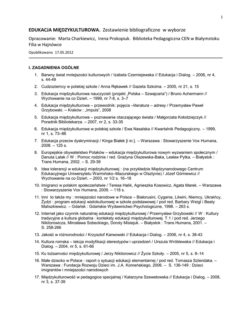 EDUKACJA MIĘDZYKULTUROWA. Zestawienie bibliograficzne w