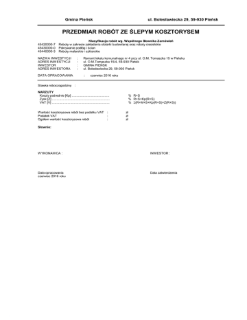 PRZEDMIAR ROBÓT ZE ŚLEPYM KOSZTORYSEM