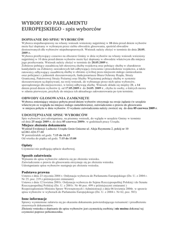 WYBORY DO PARLAMENTU EUROPEJSKIEGO ‐ spis wyborców