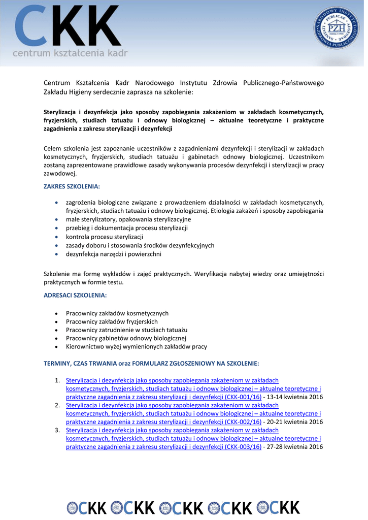 CKK szkolenie dezynfekcja sterylizacja