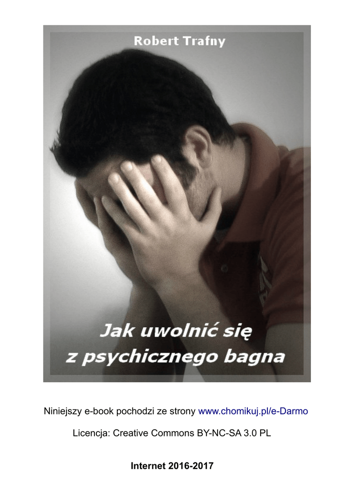 Niniejszy e-book pochodzi ze strony www.chomikuj.pl/e-Darmo Licencja: Creative Commons BY-NC-SA 3.0 PL Internet 2016-2017 Wstęp Od czego zacząć zmianę swojego życia? Można by rzec, że od czegokolwiek. Liczy się bowiem to, aby elementy negatywne zamienić na pozytywne. Co za różnica w jakiej kolejności? Najważniejsze jest to, aby w tym odmienianiu postępować, odzyskiwać kolejne obszary, które źle funkcjonują lub w ogóle nie funkcjonują. Nie jest to jednak do końca dobra metoda. Można ją stosować tylko w sytuacji, kiedy nie dysponujemy lepszą metodą. Lepsze wtedy to niż nic. Od sposobu zmieniania swojego życia dużo będzie zależało. Jeżeli nasze działania będą chaotyczne i nieprzemyślane, końcowe rezultaty mogą być niezadowalające, a czasami bardzo skąpe. Wyobraźmy sobie przypadek kierowcy, który stwierdza, że hamulce w jego samochodzie nie działają zbyt dobrze. Po szybkiej analizie okazuje się, iż przyczyną problemu jest mała ilość płynu hamulcowego. Dolewa więc nową porcję, która usuwa problem. Po kilku jednak dniach sytuacja się powtarza. Hamulce szwankują, a przyczyną znowu okazuje się być zbyt mała ilość płynu. W ten sposób można naprawiać w nieskończoność. Puki nie rozpozna się prawdziwego problemu, w postaci ujawnienia i załatania małej dziurki w przewodzie hamulcowym, przez którą płyn ucieka, problem nie zostanie nigdy trwale zlikwidowany. Warto więc przed rozpoczęciem naprawy swojego życia dokładnie je przeanalizować, rozpoznać prawdziwe problemy i ustalić plan działania na najbliższy czas. Nie może on być zbyt długi, ponieważ w miarę poprawy i odzyskiwania utraconej energii, rosnąć będą nasze możliwości, oraz będą się odsłaniać kolejne problemy, których wcześniej nie dostrzegaliśmy. Po pewnym czasie trzeba będzie więc i tak zmodyfikować nasz plan długoterminowy. Należy go zatem ustalać dosyć pobieżnie i umownie, mając świadomość, że po pewnym czasie nasze priorytety się zmienią. Będzie to uzależnione od aktualnych zapotrzebowań i naszych fizycznych, czy psychicznych możliwości. Rozpoznanie problemu to raz, a siły lub umiejętność jego rozwiązania to dwa. Czasem rozwiązanie problemu trzeba zostawić na czas późniejszy. Przyczyn może być kilka. Jak wykazaliśmy w przytoczonym wyżej przykładzie, należy wstrzymać się z uzupełnieniem płynu hamulcowego do czasu załatania dziury. Dopiero wtedy uzupełnienie płynu będzie miało sens. To, co często przeszkadza ludziom w samorozwoju, to brak cierpliwości, a cierpliwość jest przecież wpisana w przyrodę. Trudno zbierać z pola płody rolne, kiedy dopiero co się posiało. Potrzebny jest czas na wzrost. Tak samo jest z nami. Czasami musimy poczekać na właściwy czas. Może to być miesiąc, dwa, pół roku, a nawet kilka lat. Musimy czekać na większe siły, na rozwiązanie wpierw innego problemu lub na dojrzenie do niego. Czasami jesteśmy po prostu mentalnie, emocjonalnie lub duchowo nieprzygotowani na to, chociaż nam samym może się wydawać co innego. Pamiętam z początku, jak wielokrotnie z ciężkim sercem odpuszczałem sobie dany problem, mając podświadomą wiedzę, że jeszcze nie czas na to. Bardzo mnie to zasmucało, ponieważ zakosztowawszy słodkiego smaku odmieniania swojego życia, chciałem działać. Czekanie było dla mnie stratą czasu. Na szczęście dzięki mądrości pokoleń, ludzi, którzy przechodzili wcześniej przez to samo co ja, poddałem się tej wiedzy. Nie siedziałem jednak bezczynnie. Szybko znalazłem sobie inne problemy do rozwiązywania takie, które były na miarę moich możliwości. Czas płynął a ja w ferworze działań, nie dostrze- głem nawet, kiedy przyszedł czas na te odłożone kwestie. Same zaczęły się rozwiązywać jako niewielkie problemy. Byłem w stu procentach na nie przygotowany, nawet nie spodziewając się tego. Czasami warto więc sobie odpuścić, złapać oddech. Brnięcie wciąż do przodu, za wszelką cenę nie jest dobrą metodą. Wyobraźcie sobie trębacza, który dmie w trąbkę. Bez krótkiej chociaż przerwy na złapanie oddechu długo by trębaczem nie był. Po kilku minutach wyniesiono by go martwego. Stąd też tak ważne jest korzystać z wiedzy ludzi, którzy zmierzyli się z tymi problemami wcześniej. Ich cenne wskazówki, na różnych poziomach mojego samorozwoju (szczególnie duchowego) były bezcenne. Wskazywały mi kierunek akurat w tym momencie, kiedy uporałem się (całkowicie lub częściowo) z danym problemem i nie wiedziałem jaki następny krok postawić. Drugą ważną pomocą były wskazówki Boga jako odpowiedzi na moje prośby o pomoc. W tym początkowym czasie Bóg nie skąpił mi swej łaski i spełniał prawie wszystkie moje prośby, czasem wręcz natychmiastowo (Szerzej o tym będę opowiadał w książce pt. „Czy Bóg istnieje naprawdę”). Zauważyłem wtedy trzy prawidłowości: 1. Najchętniej Bóg spełniał moje prośby dotyczące pomocy w odmienianiu mojego życia i siebie samego, 2. Pomoc zazwyczaj była zminimalizowana jakby skompresowana. Swoją wielkość ukazywała dopiero wtedy, kiedy „rozpakowałem” ją swoim działaniem i zaangażowaniem, 3. Prawie zawsze była to pomoc pozwalająca mi zrobić tylko jeden krok do przodu. Potem musiałem prosić znowu. W jaki sposób Bóg pomagał mi w moich zamierzeniach? Różnie. Ludzie, którzy prosząc Boga o pomoc, oczekują, że przyjdzie On osobiście z pomocą, są nie tylko naiwni, ale także zdradzają swoje religijne niedouczenie. Zazwyczaj Bóg pomaga poprzez innych ludzi, choć niekoniecznie. Mogą to być także zwierzęta, przyroda, cokolwiek... Są to natchnienia w postaci ujrzenia czegoś, usłyszenia (nawet urywka czyjejś rozmowy), czegokolwiek co sprawia, że nagle nas olśniewa. Pomimo tego, że samo zdarzenie miało się nijak do naszej sytuacji, jednak wskazówka, która dzięki temu pojawiła się w naszej głow