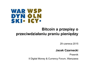 Bitcoin a przepisy o przeciwdziałaniu praniu pieniędzy 29 czerwca 2015 Jacek Czarnecki Prawnik II Digital Money & Currency Forum, Warszawa Bitcoin a AML Czym jest pranie pieniędzy? Przestępstwo prania brudnych pieniędzy Architektura prawna przeciwdziałania praniu pieniędzy Pranie pieniędzy a Bitcoin Przepisy polskie i unijne Praktyczne konsekwencje Nowa unijna dyrektywa AML 2 Pranie brudnych pieniędzy lokowanie 3 maskowanie integrowanie Przestępstwo prania brudnych pieniędzy Art. 299 § 1 kodeksu karnego Kto środki płatnicze, instrumenty finansowe, papiery wartościowe, wartości dewizowe, prawa majątkowe lub inne mienie ruchome lub nieruchomości, pochodzące z korzyści związanych z popełnieniem czynu zabronionego, przyjmuje, przekazuje lub wywozi za granicę, pomaga do przenoszenia ich własności lub posiadania albo podejmuje inne czynności, które mogą udaremnić lub znacznie utrudnić stwierdzenie ich przestępnego pochodzenia lub miejsca umieszczenia, ich wykrycie, zajęcie albo orzeczenie przepadku, podlega karze pozbawienia wolności od 6 miesięcy do lat 8. 4 Przestępstwo prania brudnych pieniędzy Art. 299 § 1 kodeksu karnego Kto środki płatnicze, instrumenty finansowe, papiery wartościowe, wartości dewizowe, prawa majątkowe lub inne mienie ruchome lub nieruchomości, pochodzące z korzyści związanych z popełnieniem czynu zabronionego, przyjmuje, przekazuje lub wywozi za granicę, pomaga do przenoszenia ich własności lub posiadania albo podejmuje inne czynności, które mogą udaremnić lub znacznie utrudnić stwierdzenie ich przestępnego pochodzenia lub miejsca umieszczenia, ich wykrycie, zajęcie albo orzeczenie przepadku, podlega karze pozbawienia wolności od 6 miesięcy do lat 8. 5 Przestępstwo prania brudnych pieniędzy Art. 299 § 1 kodeksu karnego Kto środki płatnicze, instrumenty finansowe, papiery wartościowe, wartości dewizowe, prawa majątkowe lub inne mienie ruchome lub nieruchomości, pochodzące z korzyści związanych z popełnieniem czynu zabronionego, przyjmuje, przekazuje lub wywozi za granicę, pomaga do przenoszenia ich własności lub posiadania albo podejmuje inne czynności, które mogą udaremnić lub znacznie utrudnić stwierdzenie ich przestępnego pochodzenia lub miejsca umieszczenia, ich wykrycie, zajęcie albo orzeczenie przepadku, podlega karze pozbawienia wolności od 6 miesięcy do lat 8. 6 Przestępstwo prania brudnych pieniędzy Art. 299 § 1 kodeksu karnego Kto środki płatnicze, instrumenty finansowe, papiery wartościowe, wartości dewizowe, prawa majątkowe lub inne mienie ruchome lub nieruchomości, pochodzące z korzyści związanych z popełnieniem czynu zabronionego, przyjmuje, przekazuje lub wywozi za granicę, pomaga do przenoszenia ich własności lub posiadania albo podejmuje inne czynności, które mogą udaremnić lub znacznie utrudnić stwierdzenie ich przestępnego pochodzenia lub miejsca umieszczenia, ich wykrycie, zajęcie albo orzeczenie przepadku, podlega karze pozbawienia wolności od 6 miesięcy do lat 8. 7 Przeciwdziałanie 8 Architektura prawna przeciwdziałania praniu pieniędzy Zalecenia FATF Ustawa Dyrektywa AML 9 FATF the Financial Action Task Force (Grupa Specjalna ds. Przeciwdziałania Praniu Pieniędzy) Organizacja międzyrządowa Zalecenia (1990, 1996, 2001, 2003, 2012) Monitorowanie wcielania zaleceń w życie, pomoc we wdrażaniu zaleceń, wydawanie innych dokumentów 10 Trzecia dyrektywa AML 2005 Obliged entities CDD Art. 4 – furtka do objęcia innych podmiotów zakresem regulacji, jeśli istnieje prawdopodobieństwo, że są używane dla celów prania pieniędzy Art. 5 – furtka do przyjęcia bardziej restrykcyjnych regulacji 11 Ustawa o przeciwdziałaniu praniu brudnych pieniędzy (1/2) Ustawa z dnia 16 listopada 2000 r. o przeciwdziałaniu praniu pieniędzy oraz finansowaniu terroryzmu Generalny Inspektor Informacji Finansowej Instytucje obowiązane, m.in.: Instytucje kredytowe Instytucje finansowe Firmy inwestycyjne Podmioty prowadzące działalność w zakresie gier losowych, zakładów wzajemnych i gier na automatach Przedsiębiorcy przyjmujący towary w gotówce o wartości równej lub przekraczającej równowartość 15.000 euro 12 Ustawa o przeciwdziałaniu praniu brudnych pieniędzy (2/2) Obowiązki instytucji obowiązanych Rejestracja dużych transakcji Rejestracja podejrzanych transakcji Prowadzenie bieżących analiz transakcji Przechowywanie rejestru transakcji oraz analiz Środki bezpieczeństwa finansowego Ocena ryzyka Identyfikacja i weryfikacja Sankcje Kary pieniężne Sankcje karne 13 Pranie pieniędzy a Bitcoin Art. 299 § 1 kodeksu karnego Kto środki płatnicze, instrumenty finansowe, papiery wartościowe, wartości dewizowe, prawa majątkowe lub inne mienie ruchome lub nieruchomości, pochodzące z korzyści związanych z popełnieniem czynu zabronionego, przyjmuje, przekazuje lub wywozi za granicę, pomaga do przenoszenia ich własności lub posiadania albo podejmuje inne czynności, które mogą udaremnić lub znacznie utrudnić stwierdzenie ich przestępnego pochodzenia lub miejsca umieszczenia, ich wykrycie, zajęcie albo orzeczenie przepadku, podlega karze pozbawienia wolności od 6 miesięcy do lat 8. 14 Pranie pieniędzy a Bitcoin Art. 299 § 1 kodeksu karnego Kto środki płatnicze, instrumenty finansowe, papiery wartościowe, wartości dewizowe, prawa majątkowe lub inne mienie ruchome lub nieruchomości, pochodzące z korzyści związanych z popełnieniem czynu zabronionego, przyjmuje, przekazuje lub wywozi za granicę, pomaga do przenoszenia ich własności lub posiadania albo podejmuje inne czynności, które mogą udaremnić lub znacznie utrudnić stwierdzenie ich przestępnego pochodzenia lub miejsca umieszczenia, ich wykrycie, zajęcie albo orzeczenie przepadku, podlega karze pozbawienia wolności od 6 miesięcy do lat 8. 15 FATF a Bitcoin Raport „Virtual Currencies Key Definitions and Potential AML/CFT Risks” (czerwiec 2014) w
