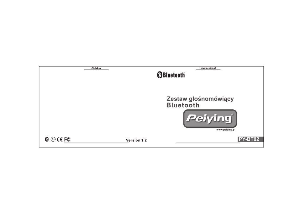 www.peiying.pl Zestaw głośnomówiący www.peiying.pl PY-BT02 www.peiying.pl Wymiana baterii 1 Głośnik 2 Przycisk wielofunkcyjny 3 Poziom dźwięku + 4 Poziom dźwięku – 5 Mikrofon 6 Wyciszenie 7 Gniazdo mini USB 5 pin 8 Uchwyt Ładowarka www.peiying.pl Instalacja w samochodzie Funkcjonalność - Tryb cichy, do odbioru rozmów prywatnych np. podczas spotkania - Zastosowanie: zestaw do konferencji, zestaw głośno mówiący do samochodu - Tryb oszczędności energii – automatyczne wyłączenie po 10 min od zerwania połączenia BT - Bluetooth, klasa 2, DSP - Transmisja 2,4G - Wsparcie dla protokołu Skype - Łatwa wymiana baterii Technologia Bluetooth Bluetooth jest to technologia pozwalająca na łączenie ze sobą różnych urządzeń np. komputerów przenośnych, telefonów komórkowych itp. bez użycia kabli. www.peiying.pl Obsługa urządzenia Start Postępuj zgodnie ze wskazówkami - Naładuj akumulatorek. Przed pierwszym użyciem zaleca się pełne naładowanie akumulatorka - Po naładowaniu akumulatorka odłącz urządzenie od ładowarki - Podczas parowania urządzenia powinny znajdować się w odległości max 1m - Podczas normalnego użytkowania sparowane urządzenia powinny znajdować się w odległości nie większej niż 10m. Ważne: - Czas ładowania: Normalny czas ładowania wynosi ok 3h. - Kontrolki ładowania: Podczas ładowania dioda czerwona miga raz na 3s, po naładowaniu dioda przestaje migać - Niski poziom baterii: Gdy dioda miga raz na 3s, zaleca się naładowanie akumulatorka. Gdy nie naładujesz baterii urządzenie wkrótce się wyłączy. - Kontrolka ładowania zapali się z opóźnieniem gdy urządzenie nie było używane przez dłuższy okres czasu lub bateria jest mocno rozładowana. Włączanie / wyłączanie urządzenia Włączanie(urządzenie jest wyłączone): Wciśnij i przytrzymaj 3s przycisk aż usłyszysz sygnał dźwiękowy. Kontrolka diodowa będzie migać na niebiesko przez 3s. Wyłączanie(urządzenie jest włączone): Wciśnij i przytrzymaj 3s przycisk aż usłyszysz sygnał dźwiękowy. Kontrolka diodowa będzie migać na czerwono przez 3s. Ważne: Po włączeniu urządzenia przyciśnij przycisk , aby włączyć funkcje parowania. www.peiying.pl Parowanie: Gdy pierwszy raz korzystasz z urządzenia, musisz przeprowadzić procedurę parowania urządzeń. Poniżej znajduje się instrukcja parowania z telefonem komórkowym. - Umieść urządzenie i telefon w odległości nie większej niż 1m - Upewnij się czy urządzenie jest wyłączone - Wciśnij i przytrzymaj ok 6s przycisk aż usłyszysz długi sygnał dźwiękowy. Diody czerwona i niebieska migają na przemian. Można rozpocząć parowanie. - Włącz Bluetooth w swoim telefonie, następnie uruchom funkcję wyszukiwania urządzeń. - Wybierz z listy wyszukanych urządzeń „BT-02A2X” - Wpisz hasło do urządzenia „0000” i wciśnij „ok”. Po poprawnym sparowaniu usłyszysz długi sygnał, dioda niebieska mignie 3 razy. Urządzenie jest teraz w trybie czuwania, dioda niebieska miga raz na 3s. - Wyjdź z menu Bluetooth w telefonie. Od tej pory możesz wykonywać i odbierać rozmowy przez zestaw głośno mówiący. Nie oddalaj telefonu od zestawu głośnomówiącego na więcej niż 10m aby nie zerwać połączenia(przeszkody mogą skrócić ten dystans). Ważne: W trybie parowania, jeżeli nie nastąpi połączenie w przeciągu 2 minut urządzenie wyłączy się. Należy wtedy całą procedurę powtórzyć. Łączenie z telefonem Po poprawnym sparowaniu zestaw głośnomówiący jest zawsze w trybie czuwania. Jeżeli ikona zestawu głośnomówiącego nie jest widoczna na ekranie telefonu komórkowego (połączenie nie jest aktywne), postępuj zgodnie ze wskazówkami: - w telefonie w opcjach bluetooth wybierz urządzenie „BT-02A2X” do ponownego połączenia . www.peiying.pl - w zestawie głośnomówiącym wciśnij połączenie w telefonie. następnie zaakceptuj Ważne Po poprawnym sparowaniu zestaw głośnomówiący jest zawsze w trybie czuwania. Jeżeli ikona zestawu głośnomówiącego nie jest widoczna na ekranie telefonu komórkowego (połączenie nie jest aktywne), postępuj zgodnie ze wskazówkami: Po nawiązaniu połączenia bluetooth, usłyszysz sygnał w głosniku - Połączenie bluetooth jest nieaktywne, ikona znikła z ekranu telefonu, może się tak dziać gdy np.: rozładuje się bateria w zestawie głośnomówiącym, lub odległość pomiędzy urządzeniami jest za duża, należy w takim przypadku przywrócić połączenie. - Urządzenie jest wyposażone w system oszczędzania baterii. Po zerwaniu połączenia bluetooth, urządzenie za ok 10min wyłączy się automatycznie. - Aby przywrócić połączenie wciśnij przycisk w przeciągu 10 minut. Połączenie możesz również przywrócić w telefonie. - W większości telefonów połączenie przywróci się automatycznie po włączeniu telefonu. Zerwanie połączenia Możesz połączyć swój telefon z innym zestawem głośnomówiącym. Aby rozłączyć telefon z zestawem głośnomówiącym należy: - w zestawie głośnomówiącym: wyłączyć urządzenie - w telefonie: w opcjach bluetooth wybrać „rozłącz” Korzystanie z zestawu głośnomówiące Po nawiązaniu połączenia Bluetooth, możesz korzystać z różnych funkcji urządzenia, niektóre funkcje są dostępne tylko gdy telefon jest w trybie „Hands-Free”: www.peiying.pl - Odebranie połączenia: Aby odebrać połączenie poczekaj na sygnał dzwonka w głośniku, następnie wciśnij przycisk w zestawie głośnomówiącym lub odbierz połączenie zwyczajnie telefonem. - Zakończenie rozmowy: Aby zakończyć połączenie wciśnij przycisk w zestawie głośnomówiącym lub rozłącz połączenie zwyczajnie telefonem. Po rozłączeniu usłyszysz krótki sygnał dźwiękowy. - Odrzucenie połączenia Gdy usłyszysz dzwonek, wciśnij i przytrzymaj 3s przycisk aż usłyszysz krótki sygnał dźwiękowy. - Wybieranie głosowe Gdy telefon jest w trybie wybi