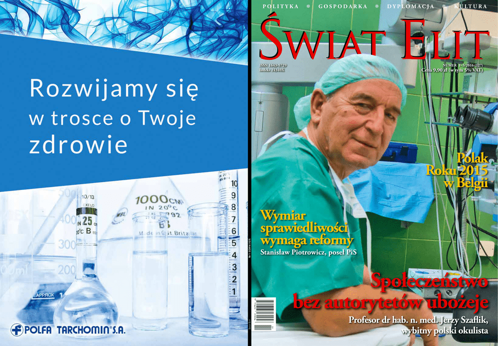 POLITYKA GOSPODARKA ISSN 1643-5729 Indeks 24340X DYPLOMACJA K U LT U R A NUMER 1–3/2016 (127) Cena 9,90 zł (w tym 5% VAT) Nr 1–3/2016 (127) Polak Roku 2015 w Belgii Wymiar sprawiedliwości wymaga reformy Stanisław Piotrowicz, poseł PiS Społeczeństwo bez autorytetów ubożeje Profesor dr hab. n. med. Jerzy Szaflik, wybitny polski okulista www.adika-moda.pl [email protected] Stoiska Firmowe C.H. Ptak (Rzgów) ● ● Hala G, box W 15 ● Hala G, box W 19 Nocna Strefa Handlu (Nowa Hala G) – box 029 C.H. Medax ● Głuchów Hala, box F5 Szanowni Państwo, FOTO archiwum redakcji OD REDAKCJI ,, Ogólnopolskiej dyskusji o konieczności zmiany Konstytucji, losach wymiaru sprawiedliwości, kondycji służb mundurowych i dalszych planach ekipy rządzącej nie mogło jednak zabraknąć w najnowszym numerze „Świata Elit”, który właśnie oddajemy w Państwa ręce. 6 Świat Elit | 1–3/2016 astronomiczna wiosna właśnie się zaczęła, do Polski wracają bociany, dzień jest coraz dłuższy, a w myślach niektórzy już planują wakacje. To także czas świąt wielkanocnych, spędzanych w rodzinnym gronie przy suto zastawionym tradycyjnymi potrawami stole. W tych wyjątkowych dniach odpoczynku patrzymy z nadzieją w przyszłość, pragnąc odskoczni choćby od ostatnich wydarzeń politycznych w kraju i za granicą, po raz kolejny wzbudzających ogromne emocje. Ogólnopolskiej dyskusji o konieczności zmiany Konstytucji, losach wymiaru sprawiedliwości, kondycji służb mundurowych i dalszych planach ekipy rządzącej nie mogło jednak zabraknąć w najnowszym numerze „Świata Elit”, który właśnie oddajemy w Państwa ręce. Państwa uwadze polecamy rozmowę ze Stanisławem Piotrowiczem, posłem PiS i byłym prokuratorem, oraz Mieczysławem Kasprzakiem, posłem PSL, a także wypowiedzi członków Zespołu Poselskiego na rzecz Nowej Konstytucji – Janusza Sanockiego i Andrzeja Gawrona. Początek roku nie tylko dla Polaków jest okazją do świętowania, o czym przypominamy naszym Czytelnikom w relacjach z urodzin Państwa Litewskiego, obchodów Dnia Obrońców Ojczyzny w Rosji, chińskiego Nowego Roku Małpy czy z ogólnoświatowej promocji Francji poprzez wyjątkowe kolacje „Goût de France / Good France”. Jednak nie samą państwowością człowiek żyje, tym bardziej w wiosennej aurze melancholii, dlatego z przyjemnością prezentujemy Państwu wybitne postacie z wielu dziedzin życia. Nie brakuje też ważnych tematów społecznych w wywiadach z prof. dr. hab. n. med. Jerzym P. Szaflikiem i prof. dr. hab. Alojzym Z. Nowakiem oraz kontynuacji rozważań o Inszallah w rozmowie z Januszem Mrowcem, byłym ambasadorem w krajach arabskich. Szczególnie polecamy rozmowy z przedstawicielami świata kultury, począwszy od Phila Grabsky’ego, reżysera dokumentalisty, przez artystę malarza Dariusza Orszulika, po Matta Duska, kanadyjskiego piosenkarza, nazywanego Frankiem Sinatrą XXI wieku. Ponadto dla wszystkich zabieganych, którym osobiście nie udało się uczestniczyć w niezwykle ważnych wydarzeniach biznesowych, charytatywnych i kulturalnych, przygotowaliśmy relacje z IX Gali Fundacji Pro Seniore, Jurajskiego Produktu Roku, III Charytatywnego Balu Oficerskiego Policji oraz gali z okazji zakończenia obchodów 15-lecia Akademii Polskiego Sukcesu i 25-lecia Polskiego Klubu Biznesu. Tym samym jesteśmy przekonani, że lektura niniejszego magazynu będzie dla Państwa niezwykle interesująca i umili wiosenne dni i wieczory. W NUMERZE magazyn polityczno-biznesowy 1–3/2016 POLITYKA 10Wymiar sprawiedliwości wymaga reformy rozmowa ze Stanisławem Piotrowiczem, posłem PiS 12 Nie odpuszczamy 14 Nowa konstytucja – konieczne zmiany, 10 rozmowa z Mieczysławem Kasprzakiem, posłem PSL rozmowa z Januszem Sanockim, posłem niezrzeszonym i Andrzejem Gawronem, posłem PiS 16 Jak ważna jest rządowa inicjatywa Program 500+? SŁUŻBY MUNDUROWE 18 Zarządzanie to więcej niż nauka 20 Druga szansa skazanych rozmowa z dr Małgorzatą Borowik DYPLOMACJA 24 Bóg tak chciał – Inszallah (cz. II) 28 30 32 33 Urodziny Państwa Litewskiego Święto Rosji Goût de France Na styku tradycji i nowoczesności 54 rozmowa z b. ambasadorem Januszem Mrowcem WYDARZENIA 34 Turniej służb mundurowych 36Bogatym nie jest ten, kto posiada, lecz ten, kto daje 38 Moda na sukces trwa 40 Gala Pro Seniore po raz dziewiąty 42 Jurajski Produkt Roku po raz piętnasty! 44 Język polski w rosyjskiej szkole? 45 Witakcy jest na serio 46 Sport to zdrowie 68 8 Świat Elit | 1–3/2016 FELIETON 48 Koń nie powinien płakać FOTO Piotr Grudysz, archiwum Uniwersytetu Warszawskiego, archiwum Justyny Napiórkowskiej rozmowa z Anną Osowską-Rembecką, b. Dyrektor Okręgową Służby Więziennej w Warszawie REDAKCJA POSTACI 50 Społeczeństwo bez autorytetów ubożeje 54 Brakuje nam wciąż grup badawczych i liderów 56 58 62 Bitwa o włosy Najedzony Kosmosem II Lubię dzielić się muzyką 64 Dokumentalista od sztuki ADRES REDAKCJI al. Solidarności 104 01–016 Warszawa 48 22 632 97 79 www.swiatelit.com.pl rozmowa z prof. dr. hab. n. med. Jerzym Szaflikiem ZESPÓŁ REDAKCYJNY Redaktor naczelna Joanna Skrobisz-Sowińska 48 22 632 74 74 [email protected] rozmowa z prof. dr. hab. Alojzym Z. Nowakiem Z-ca redaktora naczelnego Elżbieta Cudnoch 48 22 632 29 29 [email protected] rozmowa z Mattem Duskiem, kanadyjskim wokalistą rozmowa z Philem Grabskym, reżyserem, dokumentalistą REDAKCJA I KOREKTA Iwona Dornarowicz STYL 66 Elegancja to punkt wyjścia! OPRACOWANIE GRAFICZNE Marek Janicki KULTURA 68 70 72 DRUK Edit Sp. z o.o. Polak Roku 2015 w Belgii Hester z Arabii Dariusz Orszulik WSPÓŁPRACA Agata Bladosz, Hugon Bukowski, Paweł Deresz, Alina Ert-Eberdt, Marek Kasprzyk, Marek Klimaszewski, Marietta Kijek, Aleksandra Kolasa, Monika Makowska, Longin Pastusiak, Teresa Rosati, Honorata Sadownik, Małgorzata Saliw, Iwona Sarjusz-Wolska, Robert Stawski, Joanna Wiernicka-Zawisza, Marta Ewa Wróblewska, Anna Ziędarska artyst