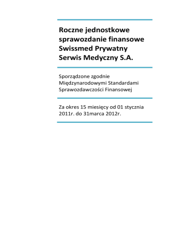 Roczne jednostkowe sprawozdanie finansowe Swissmed Prywatny Serwis