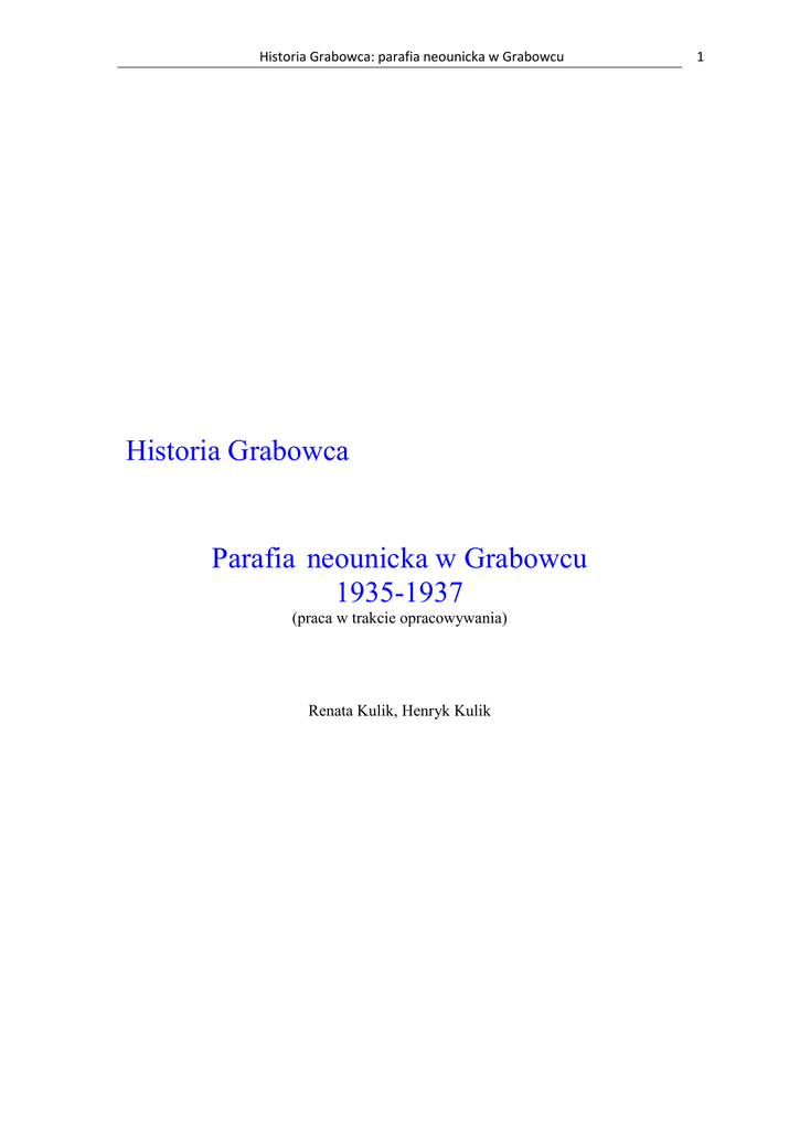 Historia parafii neounickiej w Grabowcu - Grabowiec