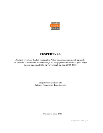 EKSPERTYZA Analiza wyników badań wizerunku Polski i postrzegania polskiej marki na świecie. ZałoŜenia i rekomendacje do pozycjonowania Polski jako kraju docelowego podróŜy turystycznych na lata 2009-2015 Ekspertyza wykonana dla Polskiej Organizacji Turystycznej Warszawa, lipiec 2008 Instytut Marki Polskiej 1 EKSPERTYZA „Analiza wyników badań wizerunku Polski i postrzegania polskiej marki na świecie. ZałoŜenia i rekomendacje do pozycjonowania Polski jako kraju docelowego podróŜy turystycznych na lata 2009-2015” wykonana dla Polskiej Organizacji Turystycznej przez Instytut Marki Polskiej. Szef Zespołu: Mirosław A. Boruc © 2008 Instytut Marki Polskiej Instytut Marki Polskiej Sp. z o.o. ul. Trębacka 4, 00-074 Warszawa tel.: (+48) 22 630-96-43, fax: (+48) 22 630-99-71 e-mail: [email protected]; www.imp.org.pl Instytut Marki Polskiej 2 STRESZCZENIE 1. Świat zakłada, Ŝe turystyka będzie się stawała największym globalnym przemysłem, kryzysu nie będzie, a nowym i głównym napędem turystyki będą w najbliŜszej dekadzie wschodzące gospodarki, do których naleŜy Polska. 2. Polska, jako duŜy, świetnie połoŜony, dobrze rozwinięty, kompletny i atrakcyjny kraj w sercu Europy moŜe stać się kontynentalną potęgą turystyczną. Ma ogromny, zaledwie tknięty kapitał turystyczny, który w kontekście przemian na świecie szybko nabiera wartości. 3. Problem polega na tym, Ŝeby Polska, ucząc się na cudzych doświadczeniach i błędach, wykazała wyobraźnię i uniknęła własnych błędów, i Ŝeby nie wpadła w pułapki związane z puszczonym na Ŝywioł rozwojem turystyki. 4. Turystyka, sektor w Polsce nie doceniany, moŜe stać się rakietą nośną rozwoju i promocji kraju, i większości jego regionów. Jest w stanie nadać kierunek oraz ton marce Polska. 5. Posiada najbardziej oczywisty i niepodwaŜalny mandat do tej roli: odwołuje się bezpośrednio do oczywistych walorów kraju (połoŜenie, uroda, dziedzictwo, kultura, ludzie), potrafi na tym zarabiać, i ułatwia zarabianie innym. 6. Turystyka moŜe być waŜnym filarem drugiego etapu modernizacji Polski, napędem jej odnowionego wizerunku i reputacji, instrumentem spajania Polaków w nowoczesną wspólnotę, która zna swój kraj, jest z niego dumna i potrafi przekonywać do niego innych. 7. W odróŜnieniu od przekazów sygnowanych przez rząd, komunikaty sektora turystycznego są uwaŜane przez opinię publiczną za wiarygodną, choć trochę podkolorowaną prezentację kraju. Wszyscy wiedzą i akceptują, Ŝe zadaniem turystyki jest pokazywanie ładniejszej strony rzeczywistości, i tego od niej oczekują. 8. Turystyka ma szczególną siłę oddziaływania. Inteligentna promocja turystyczna uszlachetnia całą ofertę kraju. Turystyka jako branŜa ma bardzo szerokie pole raŜenia i wpływa na wiele pozaturystycznych wyborów dokonywanych przez konsumentów czy decydentów. 9. W Polsce trzeba stopniowo doprowadzić do strategicznego sojuszu turystyki z innymi udziałowcami narodowej reputacji, pozostałymi sektorami – kanałami komunikacyjnymi marki kraju. 10. Turystyka znakomicie prezentuje – poprzez sympatyczną ofertę produktową, usługową i marketingową – toŜsamość kraju i najskuteczniej kształtuje jego wizerunek. Instytut Marki Polskiej 3 11. Polska wysyła o sobie w świat bardzo sprzeczne komunikaty, co powoduje wokół niej permanentne zamieszanie komunikacyjne i wizerunkowe. Szkodzi ono naszym interesom, takŜe turystycznym, poniewaŜ zniechęca szeroką publiczność do Polski jako kraju nieprzewidywalnego i niepewnego. 12. Paradoksy, kontrasty i sprzeczności są naturalne i nieuniknione, i muszą współistnieć. Kraj ma wiele róŜnych oblicz – wymiarów marki narodowej, które trzeba godzić i synchronizować. Temu słuŜy idea ToŜsamości Konkurencyjnej. 13. Po dwóch dekadach przemian Polska dojrzała, aby zacząć rozwiązywać swoje paradoksy wizerunkowe, godzić róŜne wymiary swojej marki i nadawać im wspólną myśl i ton. 14. Idea przewodnia marki Polska: „Creative Tension” (Twórcza Przekora, Energia, Dynamizm, Napięcie czy nawet Zwątpienie) jest ideą turystyki. Problem, jak ją zastosować w turystyce, jak wyrazić i jak wykorzystać jest problemem technicznym. 15. Narodowa Strategia ToŜsamości Konkurencyjnej moŜe być zapoczątkowana na polu turystyki przez Polską Organizację Turystyczną (POT), i szybko rozwinięta przy okazji spodziewanej w najbliŜszej dekadzie dynamiki wydarzeń. Byłaby to dla Kraju i dla POT dobra i rozwojowa inwestycja, z wysoką i pewną „stopą zwrotu”. 16. Samo tylko skoordynowanie przekazów wysyłanych przez róŜne kanały marki kraju wokół jednej – ogólnej, ale wspólnej idei „kreatywnej polskości” spowodowałaby, z prawdopodobieństwem bliskim pewności, widoczny wzrost wpływów z turystyki. 17. Polskiej turystyce potrzebny jest przełomowy krok, Ŝeby została w końcu dostrzeŜona jako waŜny, dochodowy i niezwykle rozwojowy sektor gospodarki. 18. Mamy w turystyce większe niŜ w innych sektorach przewagi konkurencyjne, oparte na ogromnym, róŜnorodnym i atrakcyjnym kapitale turystycznym, wrodzonej gościnności i specyficznym magnetyzmie Polaków i Polski, który działa na ludzi i ich do nas przyciąga. To oznacza, Ŝe Polska ma duŜy kapitał markowy i moŜe być silną marka turystyczną. 19. Reputację kraju i jego wizerunek moŜna zmieniać tylko w jeden sposób: trzeba poprawiać rzeczywistość, a potem z talentem komunikować to odbiorcom. Turystyka jest najlepszym do tego obszarem. Zadaniem promocji turystycznej marki Polski jest to komunikować. 20. Ekspertyza pokazuje, Ŝe jest to nie tylko sensowne i konieczne, ale takŜe moŜliwe. Prezentuje syntezę wyników róŜnych badań wizerunkowych marki Polska oraz wstępne załoŜenia i sugestie dotyczące pozycjonowania turystycznej marki Polski. 21. Badania jednoznacznie potwierdzają atrakcyjność turystyczną Polski, jej wielokie