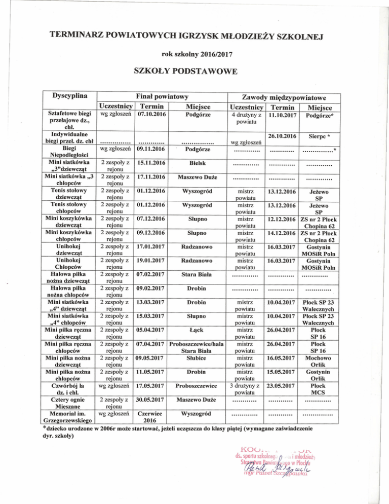 TERMINARZ POWIATOWYCH IGRZYSK MŁODZIEŻY SZKOLNEJ