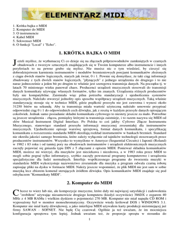 1. KRÓTKA BAJKA O MIDI 2. Komputer do MIDI